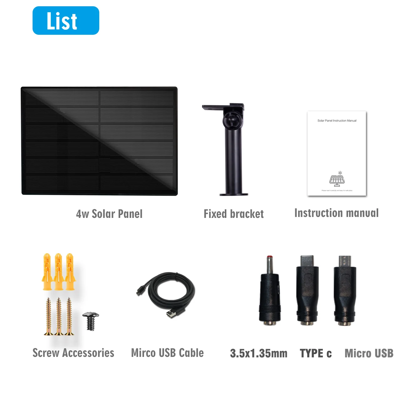 4W 태양광 패널 3-in-1 DC/마이크로 USB/Type-C 출력 5V 태양광 충전기 내장 18650 배터리 야외 보안 카메라용 IP66 방수