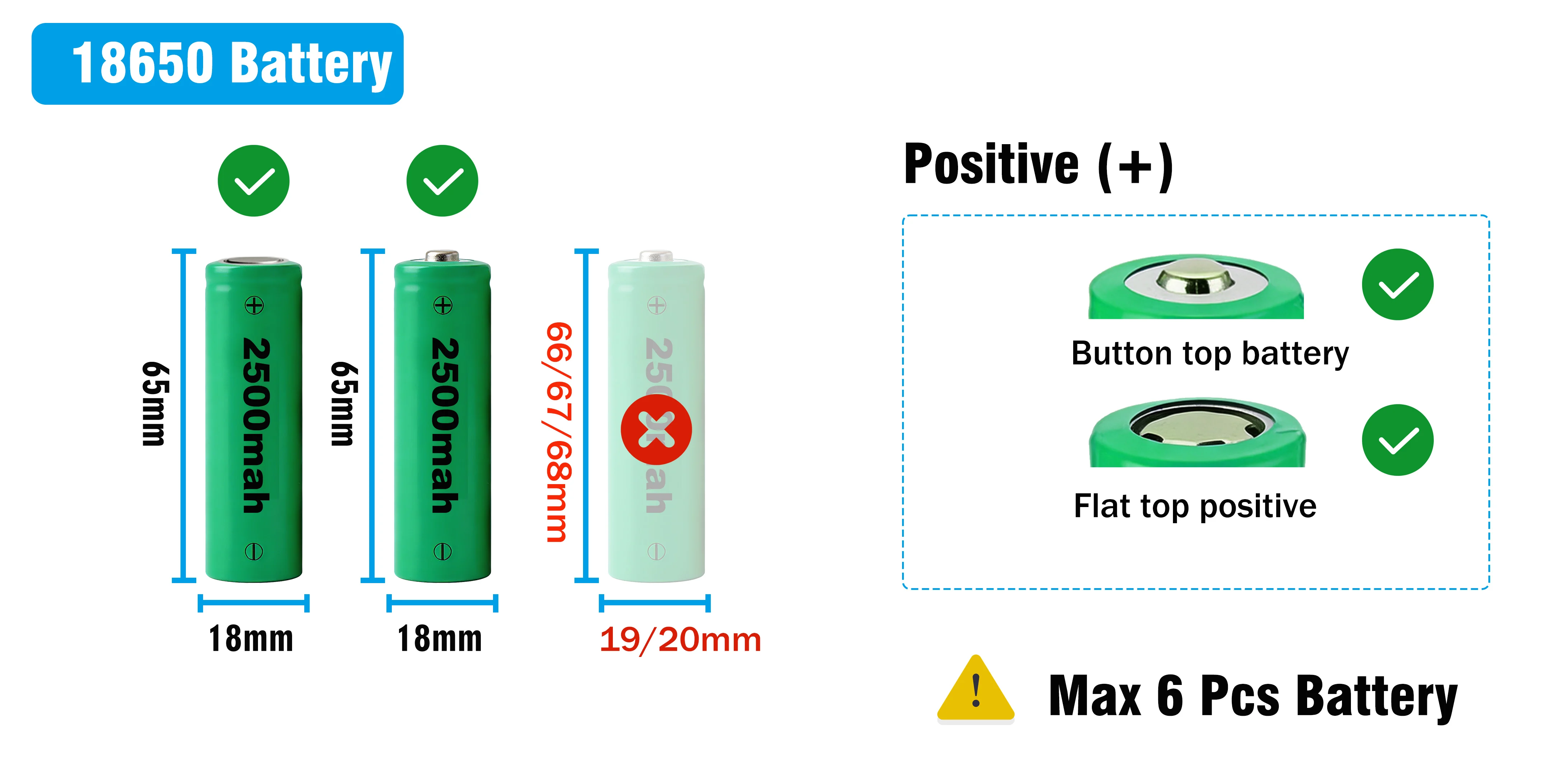 참고: 배터리 직경은 18mm를 초과해서는 안 됩니다. 그렇지 않으면 맞지 않을 수 있습니다.