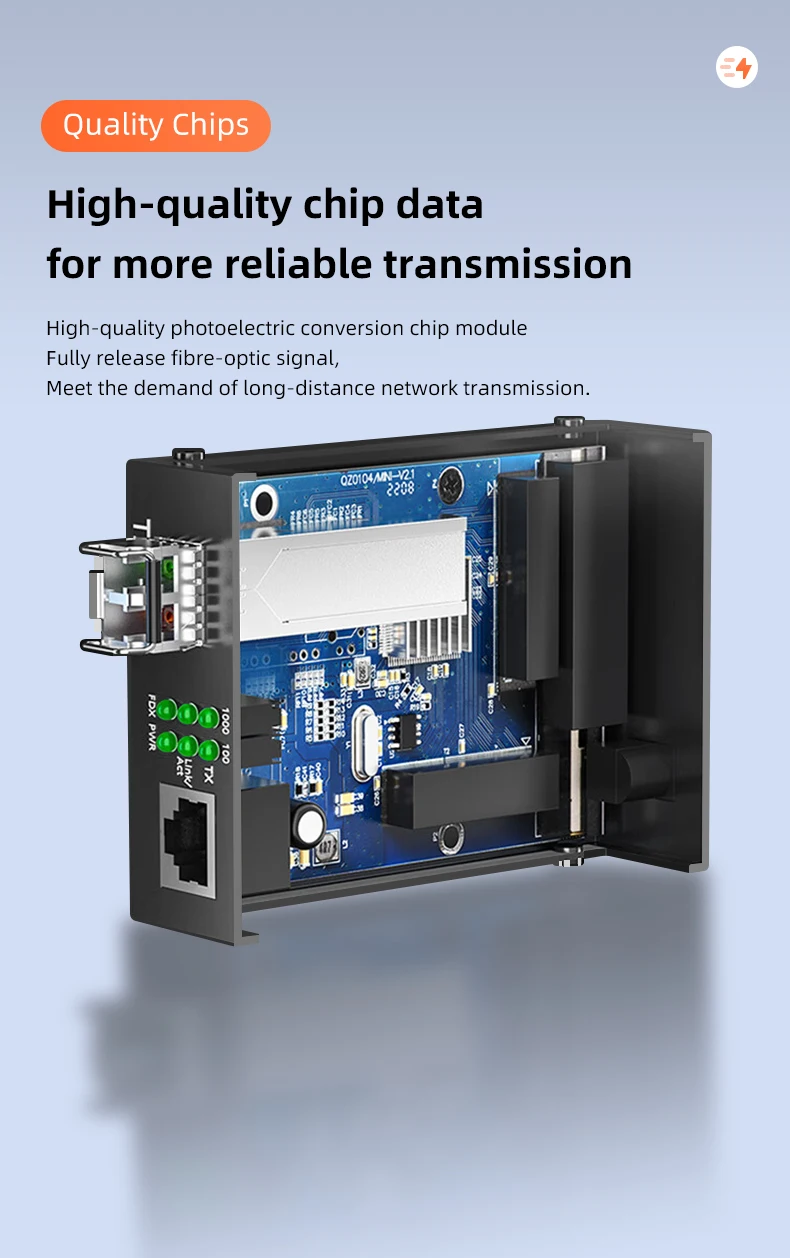 고품질 광전 변환 칩 모듈은 광섬유 신호를 완전히 방출하여 장거리 네트워크 전송 요구를 충족합니다.