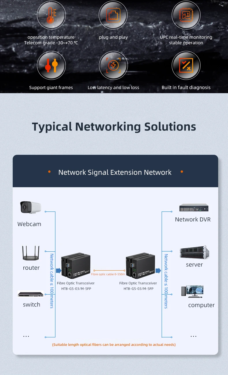 작동 온도: 통신 등급 -30℃℃~+70℃플러그 앤 플레이, UPC 실시간 모니터링 안정적인 작동, 대형 프레임 지원, 낮은 지연 시간과 낮은 손실, 내장형 고장 진단