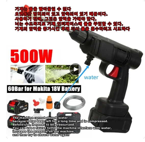 정원 호스가 필요 없으며, 양동이, 병, 시냇물 또는 수영장에서 신선한 물을 끌어올릴 수 있습니다.