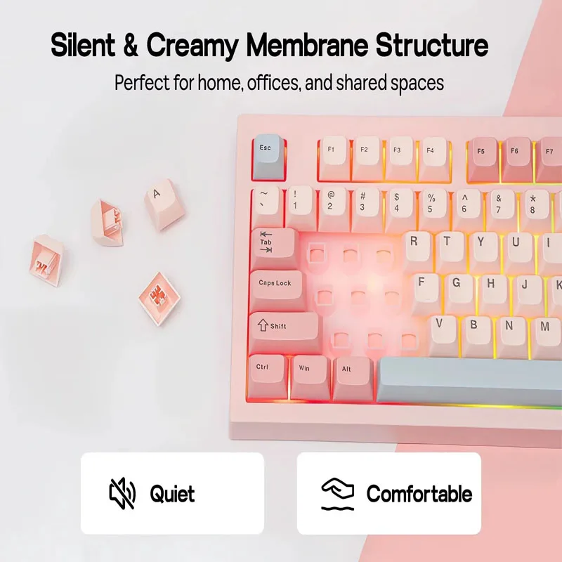 3. 반응성이 뛰어나고 조용한 타이핑, 실리콘 무소음 구조로 설계된 키는 부드럽고 섬세하며 편안한 촉감을 제공합니다. 1,000만 번의 키 입력 수명을 자랑하며 뛰어난 내구성을 보장합니다.