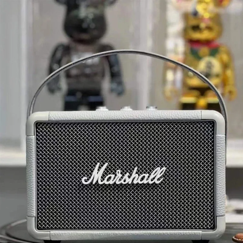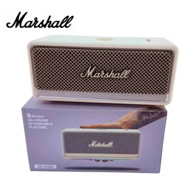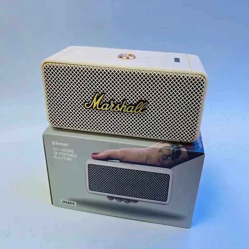 마샬 스피커는 1962년부터 전 세계를 휩쓴 기타 앰프에서 직접 유래한 디자인 언어를 바탕으로 뛰어난 브랜드 인지도를 자랑합니다. 상징적인 인조 가죽 질감, 전면을 덮고 있는 검은색 금속 그릴, 손으로 쓴 금색 로고, 그리고 황동색 물리적 컨트롤 노브가 어우러져 빈티지하면서도 거친 록 감성을 완성합니다.