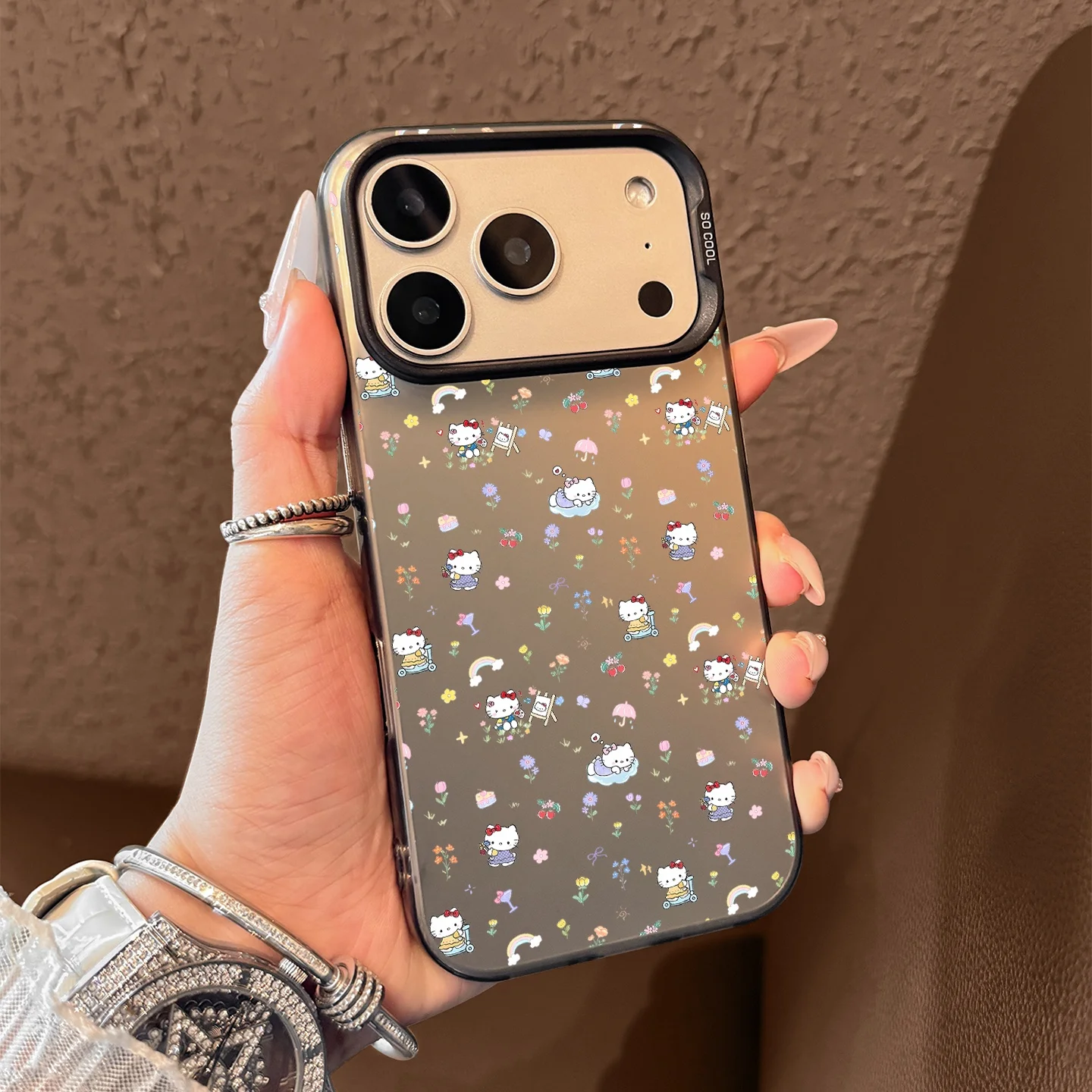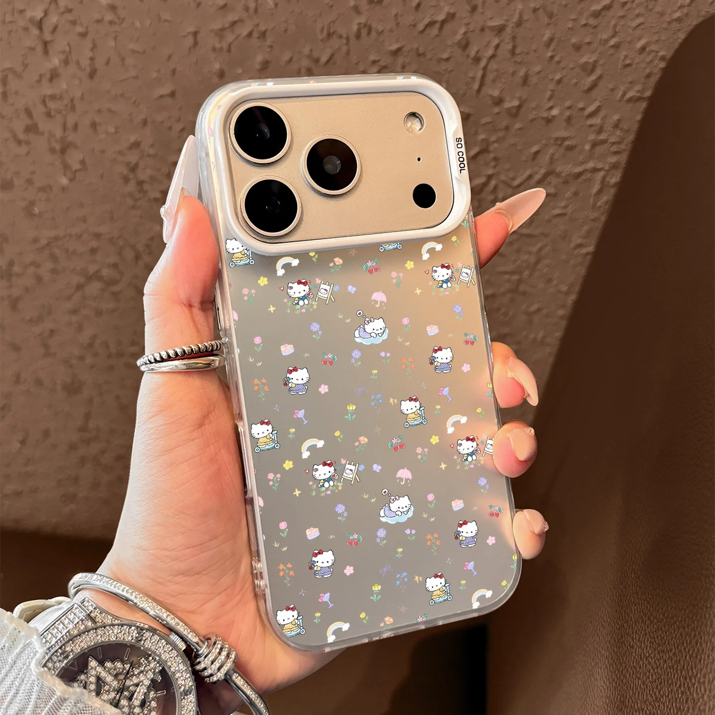 헬로키티 풀스크린 플로럴 패턴 아이폰 케이스 iPhone 17 Air Pro Max 16 15 14 13 12 11 Pro XS X 7 8 Plus 16E 17E PC 커버