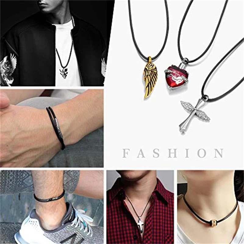 블랙 땋은 가죽 코드 왁스 와이어 가죽 코드 체인 여성 남성 로프 목걸이 목걸이 라인 가죽 스트랩 가죽 코드 목걸이 코드 가죽 목걸이 코드 목걸이용 로프 펜던트용 레이스 가죽 목 코드 목걸이 끈