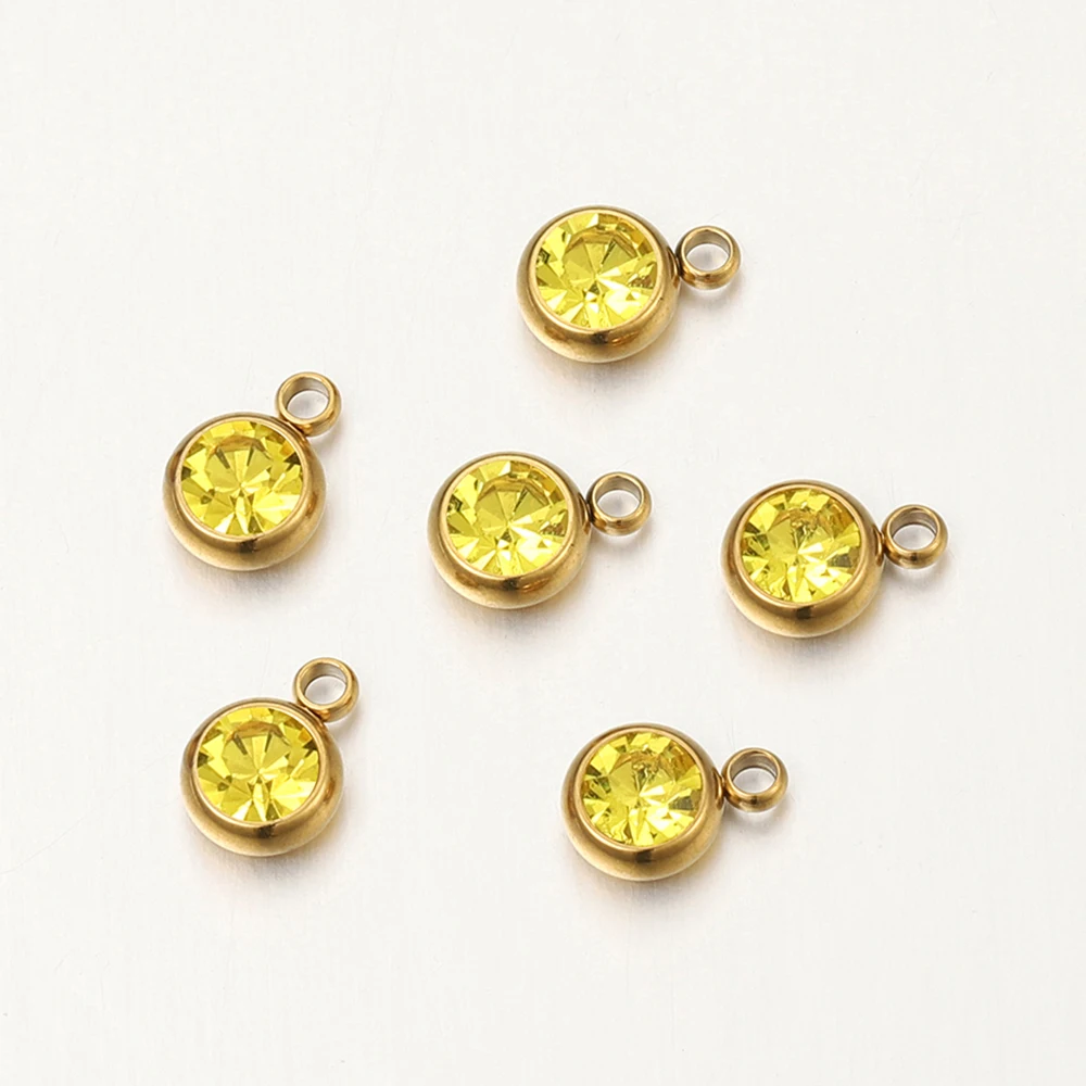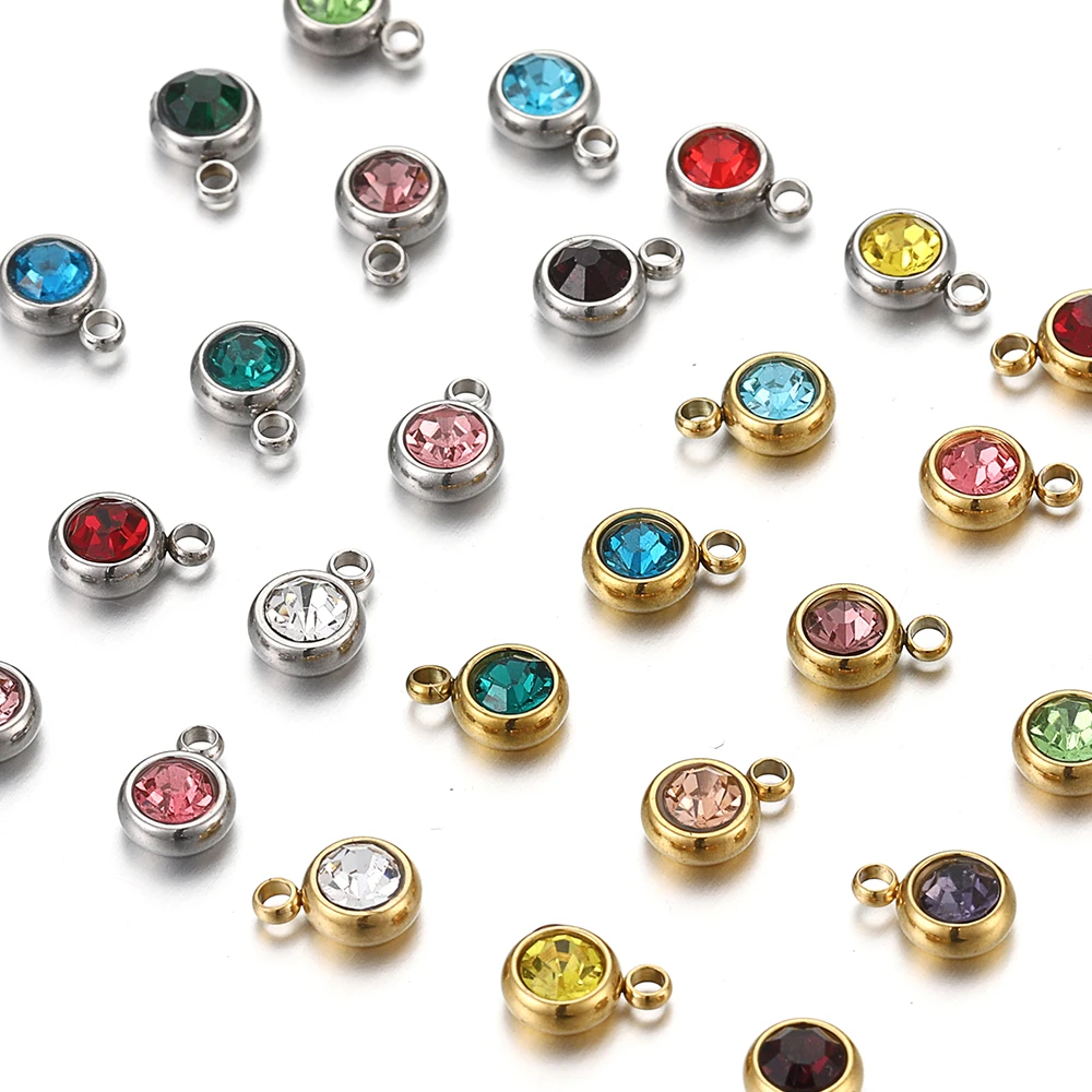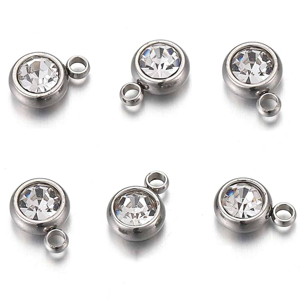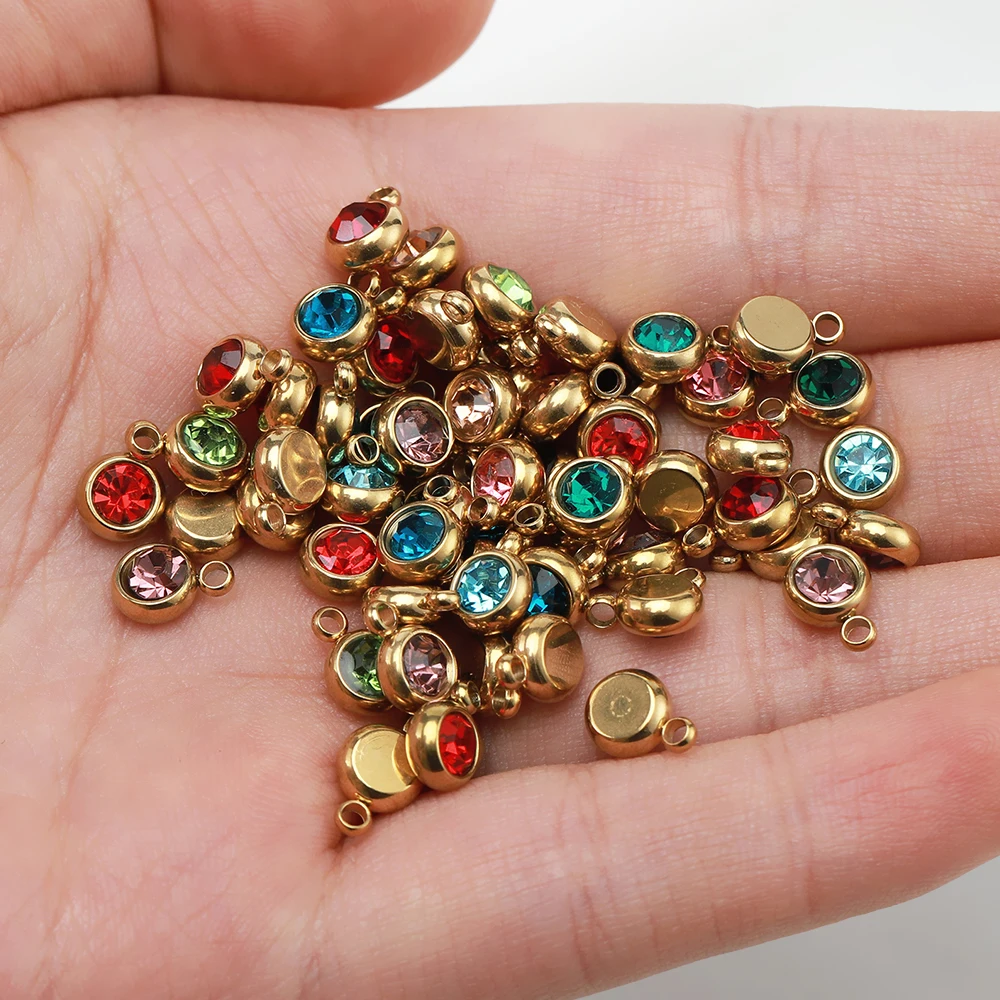 20 개/몫 6mm 크리스탈 라인 석 비즈 매력 DIY 목걸이 팔찌 쥬얼리에 대한 골드 컬러 스테인레스 스틸 펜던트 액세서리 만들기