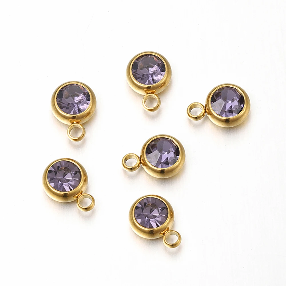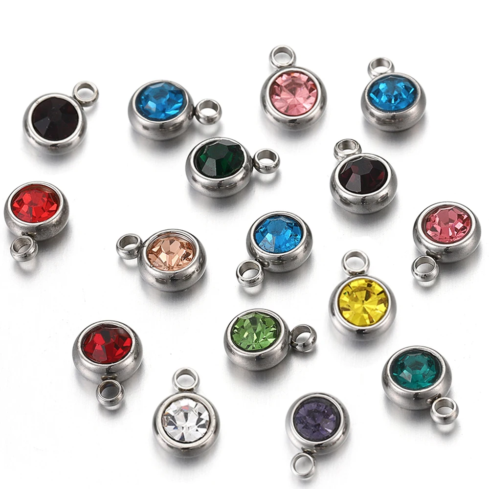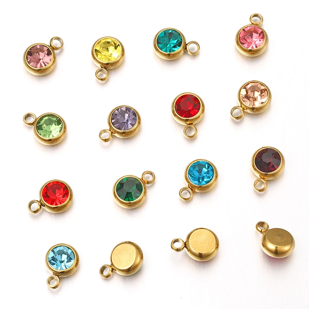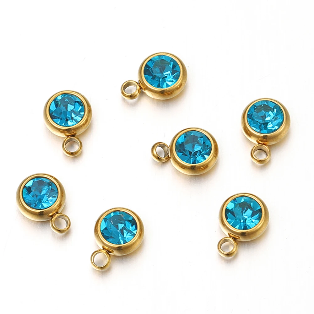 20 개/몫 6mm 크리스탈 라인 석 비즈 매력 DIY 목걸이 팔찌 쥬얼리에 대한 골드 컬러 스테인레스 스틸 펜던트 액세서리 만들기