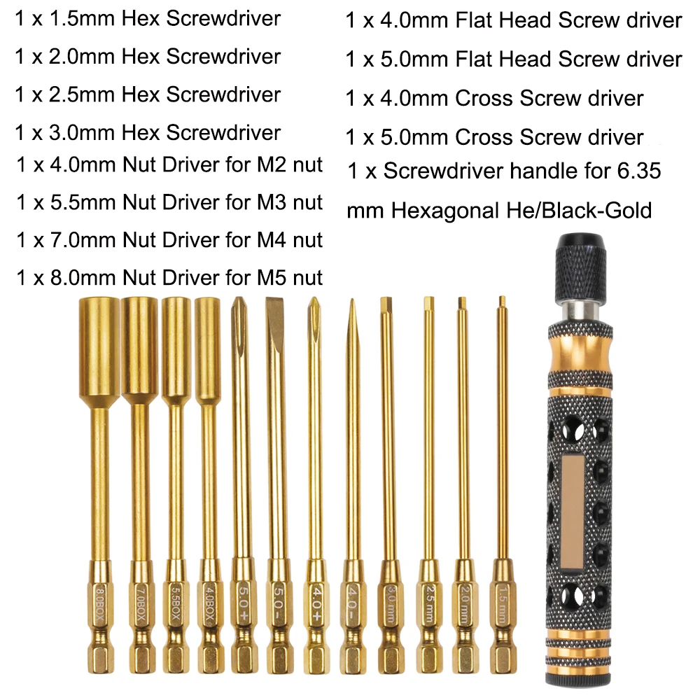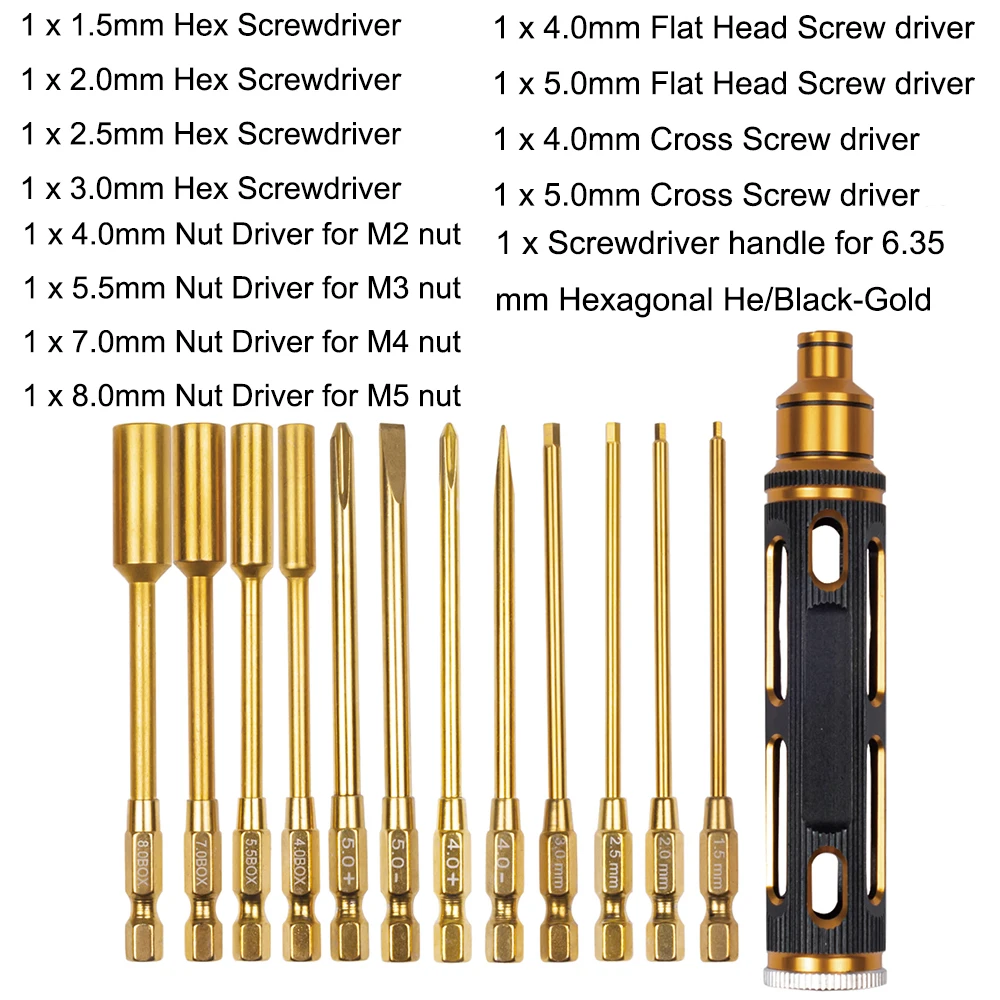 6.35mm 육각형 육각/블랙-골드용 드라이버 핸들 1개