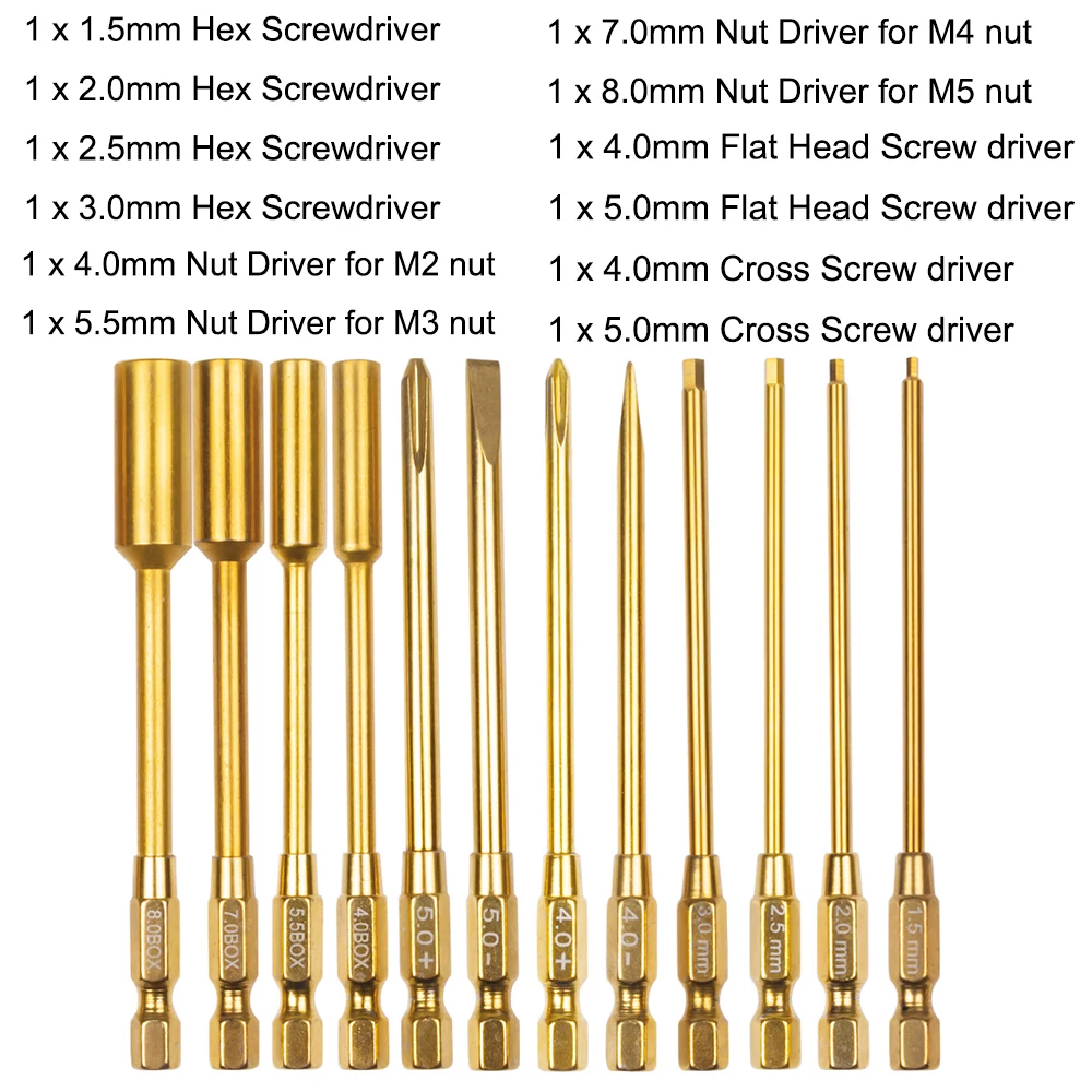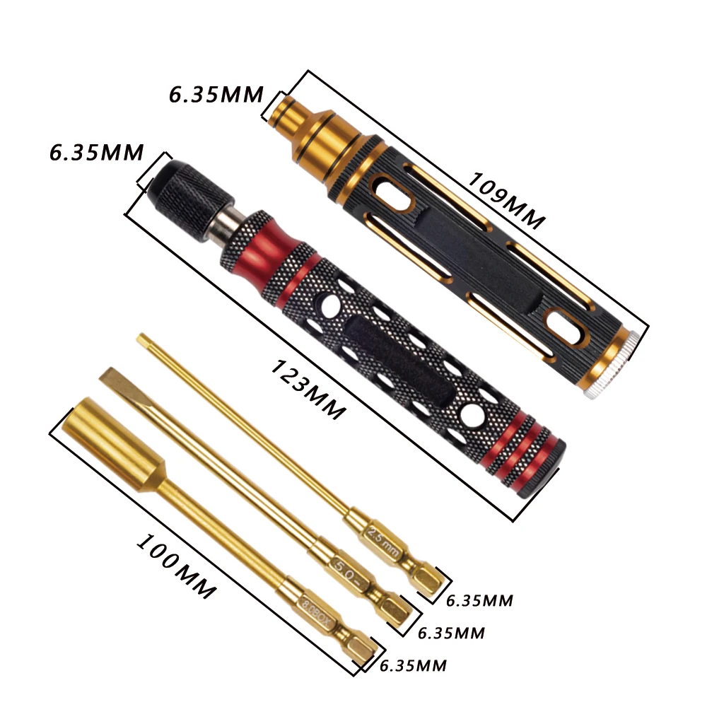 4 in 1 육각 드라이버 1.5 2.0 2.5 3.0mm 6.35mm 퀵 체인지 알렌 키 육각 나사 렌치 도구 1/8 1/10 RC 자동차 SCX10 TRX4