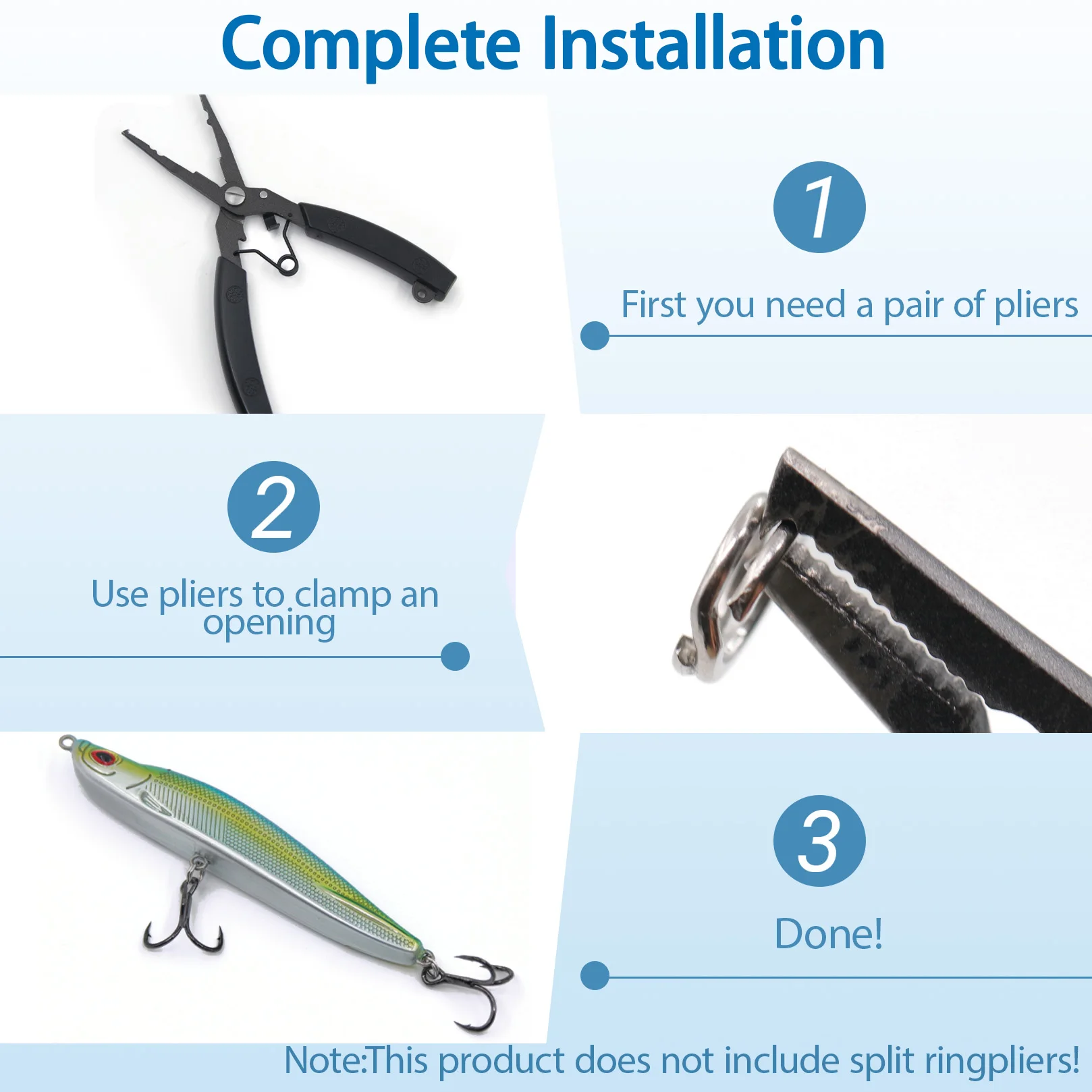 [다양한 용도] 가짜 미끼가 큰 물고기를 유인하기 위해 더 유연할 것으로 예상할 때 분할 링이 좋은 선택이 될 것입니다.분할 링은 미끼 동작을 증폭시키고 낚싯줄의 마모를 줄입니다.
