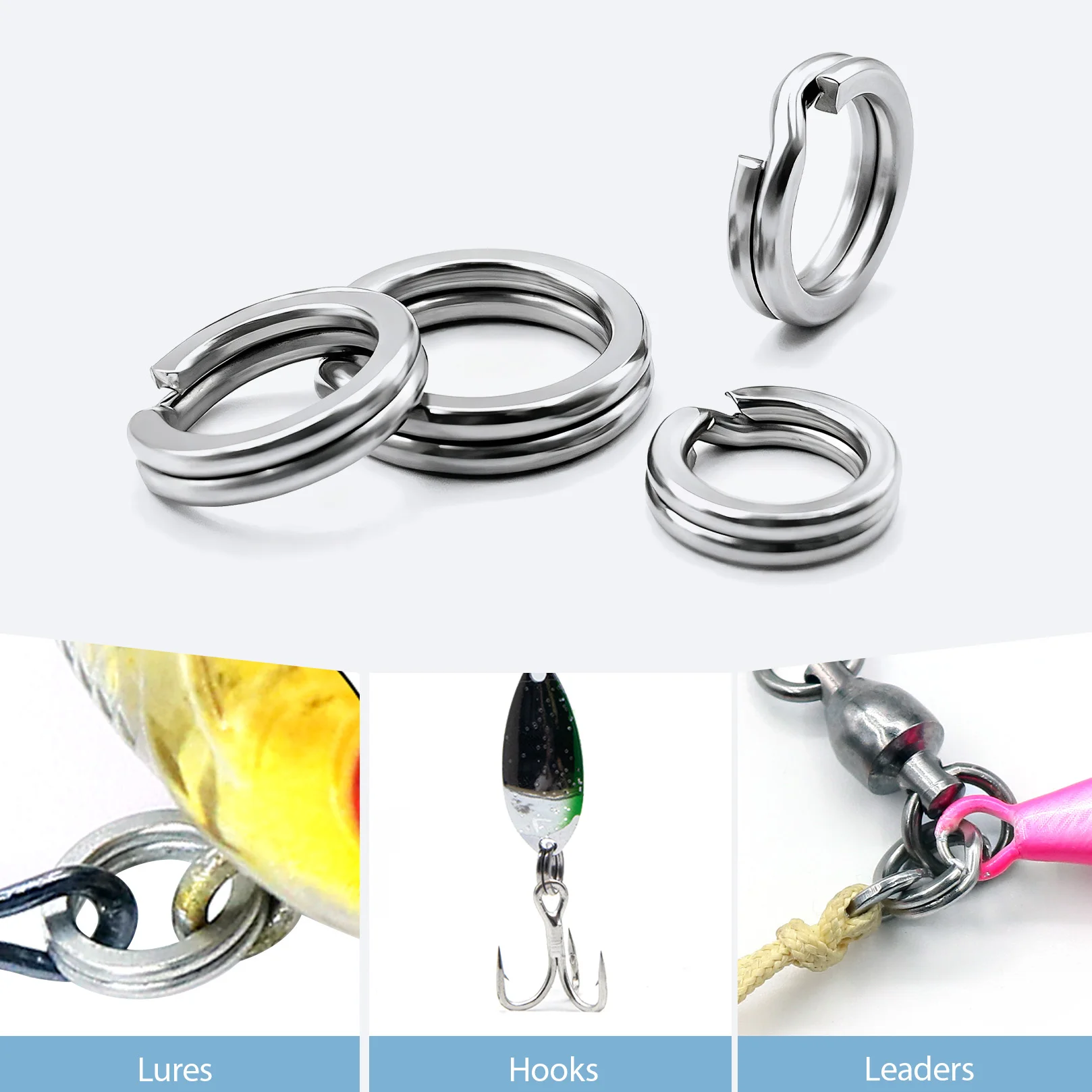 [튼튼함] 고품질 소재와 기계의 고강도 평탄화 공정으로 링의 강도가 크게 향상됩니다.물고기에 잡아당겨지는 위험을 줄입니다.더 큰 후크를 맞추기 위해 열어도 이 분할 링은 메모리를 유지하지 않고 닫힌 상태로 유지됩니다.