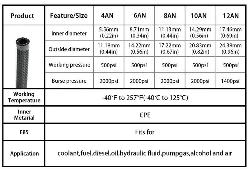 Universal, such as: Oil/ Fuel/ Water/ Fluid/ Air Line
