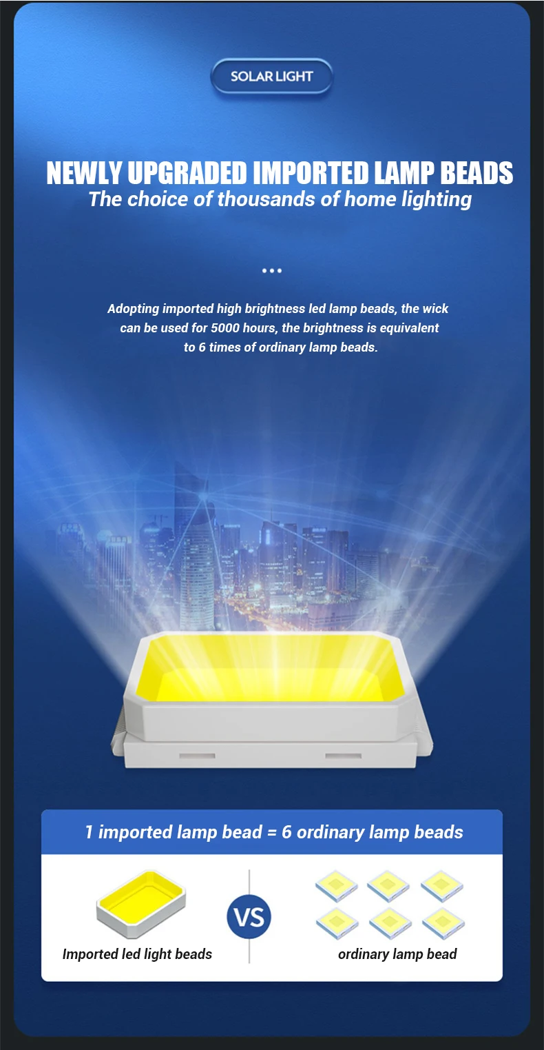 시장의 일반 벽 조명과 비교하여 태양 전지판과 주 조명 본체를 분리하여 더 큰 태양 광 충전 패널을 제공합니다. 낮에는 훨씬 더 많은 전력을 저장하고 밤에는 더 길고 밝은 빛을 발산합니다. 조명은 또한 정문, 뒷마당, 현관, 안뜰, 통로, 진입로, 차고 벽, 햇빛이 갈 수있는 곳이 더 많습니다.