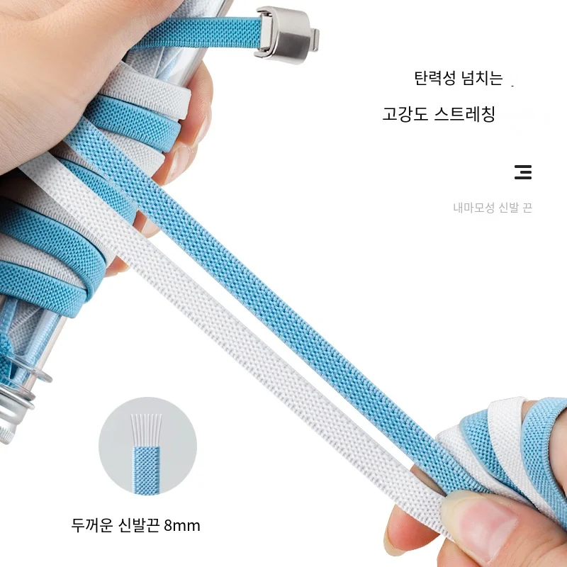 넥타이 없음 신발 끈 넥타이없이 신발 끈을 누르십시오 탄성 끈 운동화 어린이 성인 8MM 신발 용 플랫 신발 끈 확대