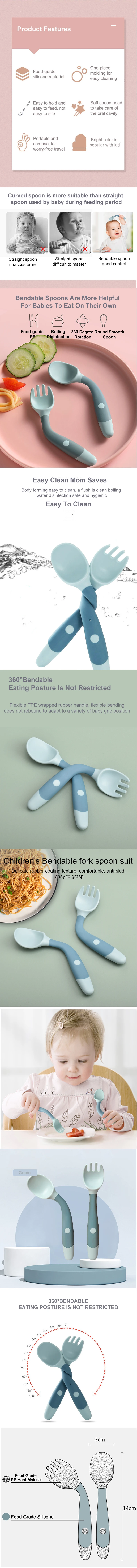• 사용하기 쉬운 트위스트 디자인:포크와 스푼의 트위스트 디자인은 사용하기 쉽고 음식이 어린이의 입에 달라 붙는 것을 방지합니다.