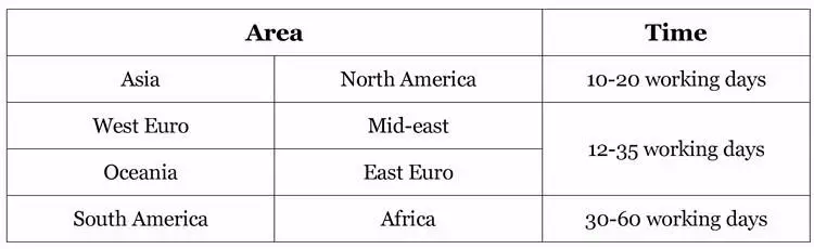 5. 날씨, 현지 관습 및 기타 정치적 요인의 영향으로 인해 배송 기간이 연장될 수 있습니다. 알려주시면 배송 기간 연장을 도와드리겠습니다.