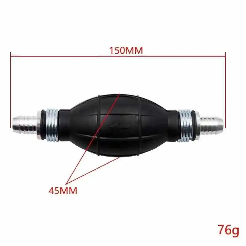 고무 및 알루미늄 소재로 제작되어 내구성이 뛰어나고 내유성 및 노화 방지 기능이 있습니다. 연료 필터 교체 후 연료 펌프에 연료를 주입하기 위한 것입니다. 대부분의 호스 길이에 연결됩니다. 단방향 전용 기능입니다. 휘발유, 디젤, 오일, 물 등을 옮기는 데 사용됩니다. 자동차, 오토바이, 보트의 디젤 엔진을 시동하기 위한 간단하고 효과적인 도구입니다. 선외 엔진에 연료를 공급하기 위해 보트의 핸드 펌프로 자주 사용됩니다. 사양: 재질: 고무 + 알루미늄 합금 색상: 검정색 입력 커넥터: 6mm,8mm,10mm,12mm 길이(전체): 15cm