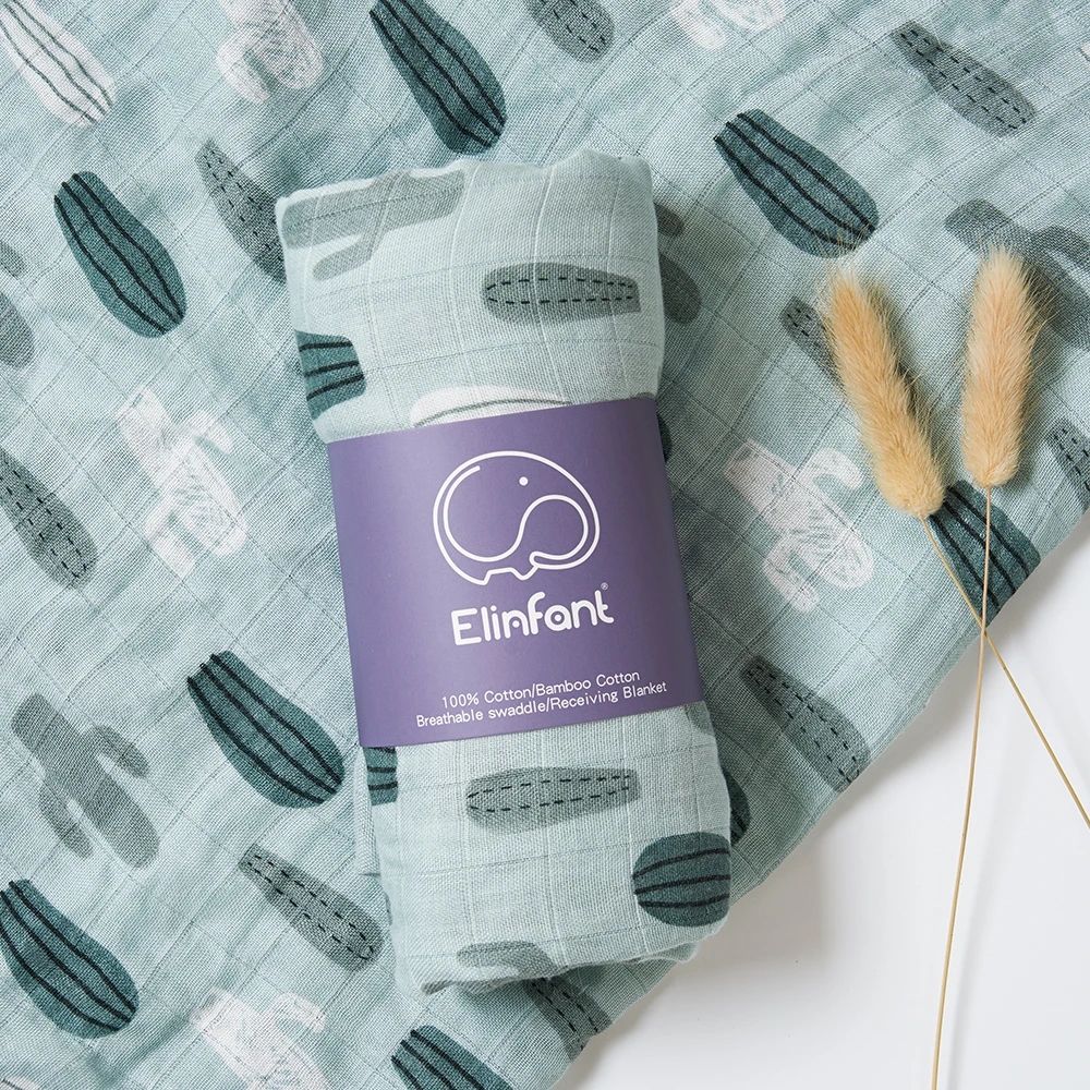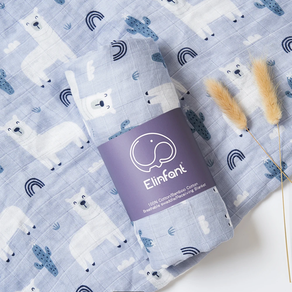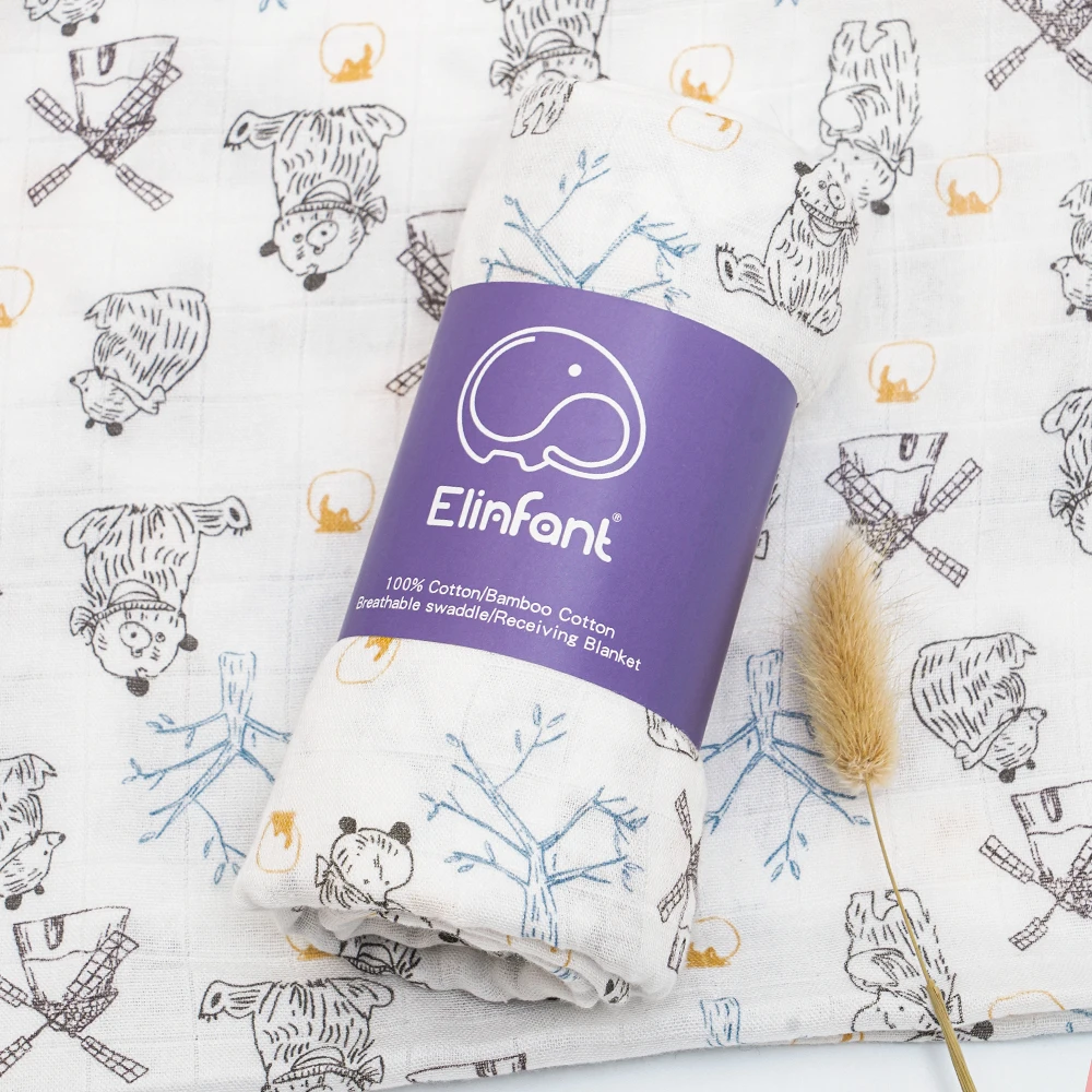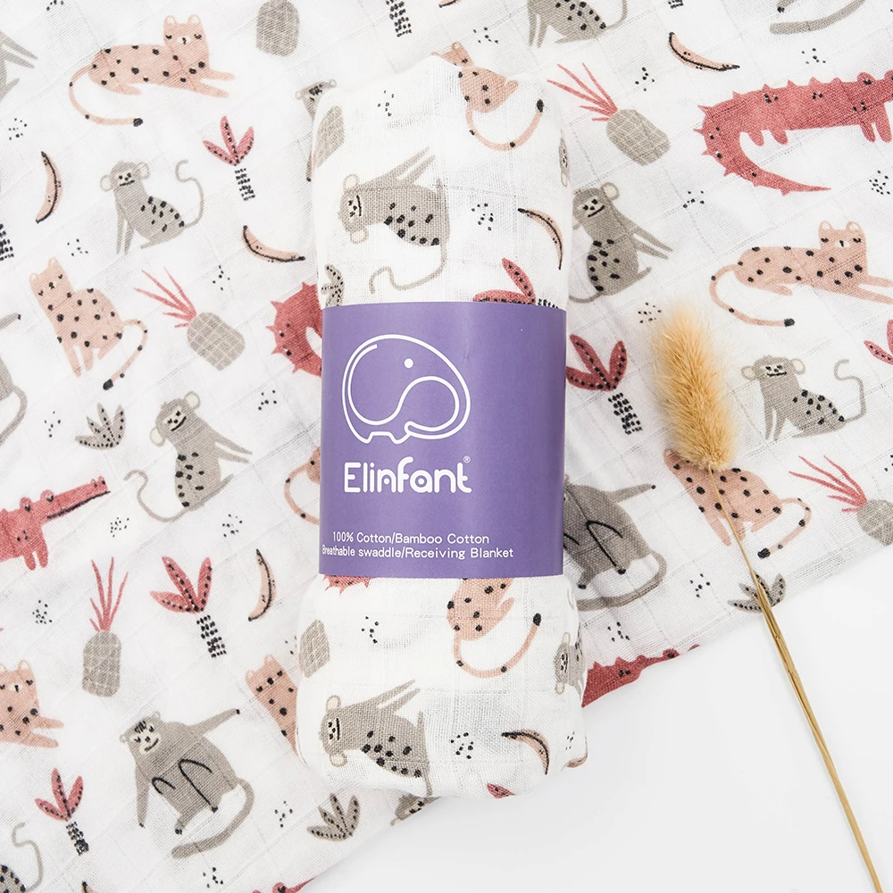 Elinfant 귀여운 소프트 프린트 베이비 타올 랩 120x110cm 대나무 코튼 베이비 모슬린 포대기 담요