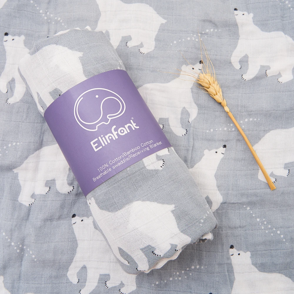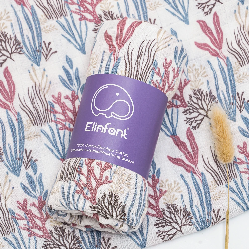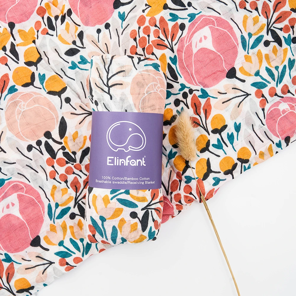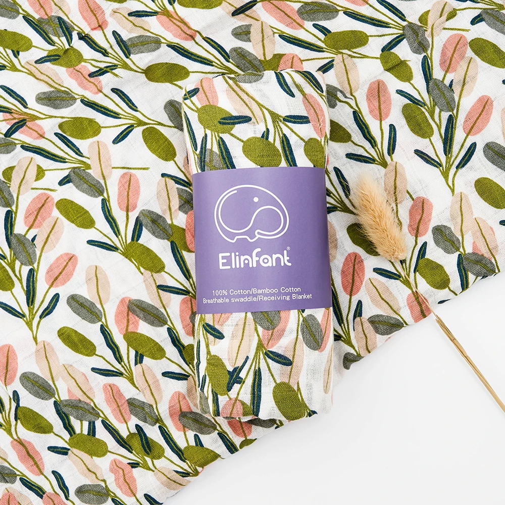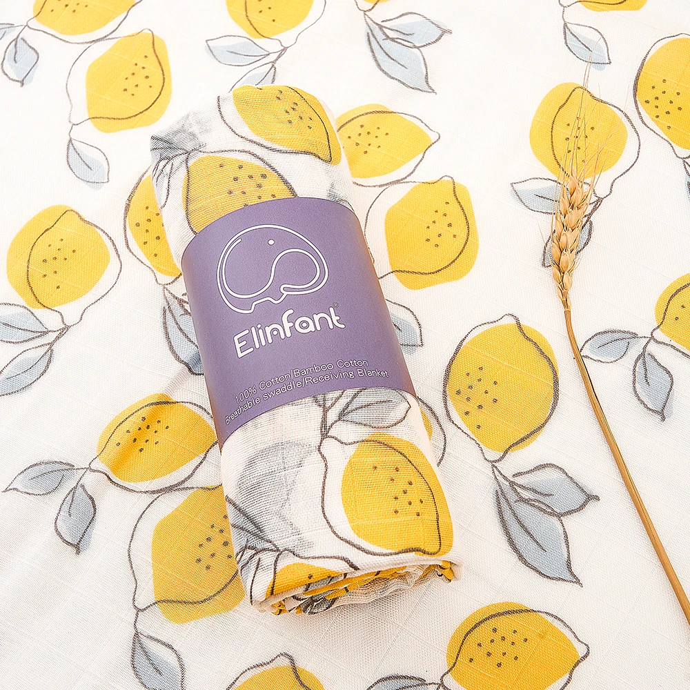Elinfant 귀여운 소프트 프린트 베이비 타올 랩 120x110cm 대나무 코튼 베이비 모슬린 포대기 담요