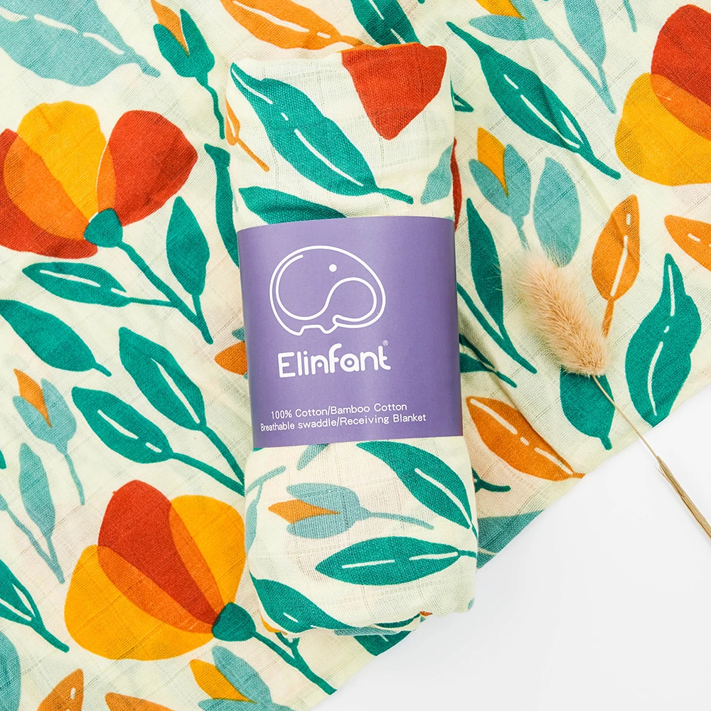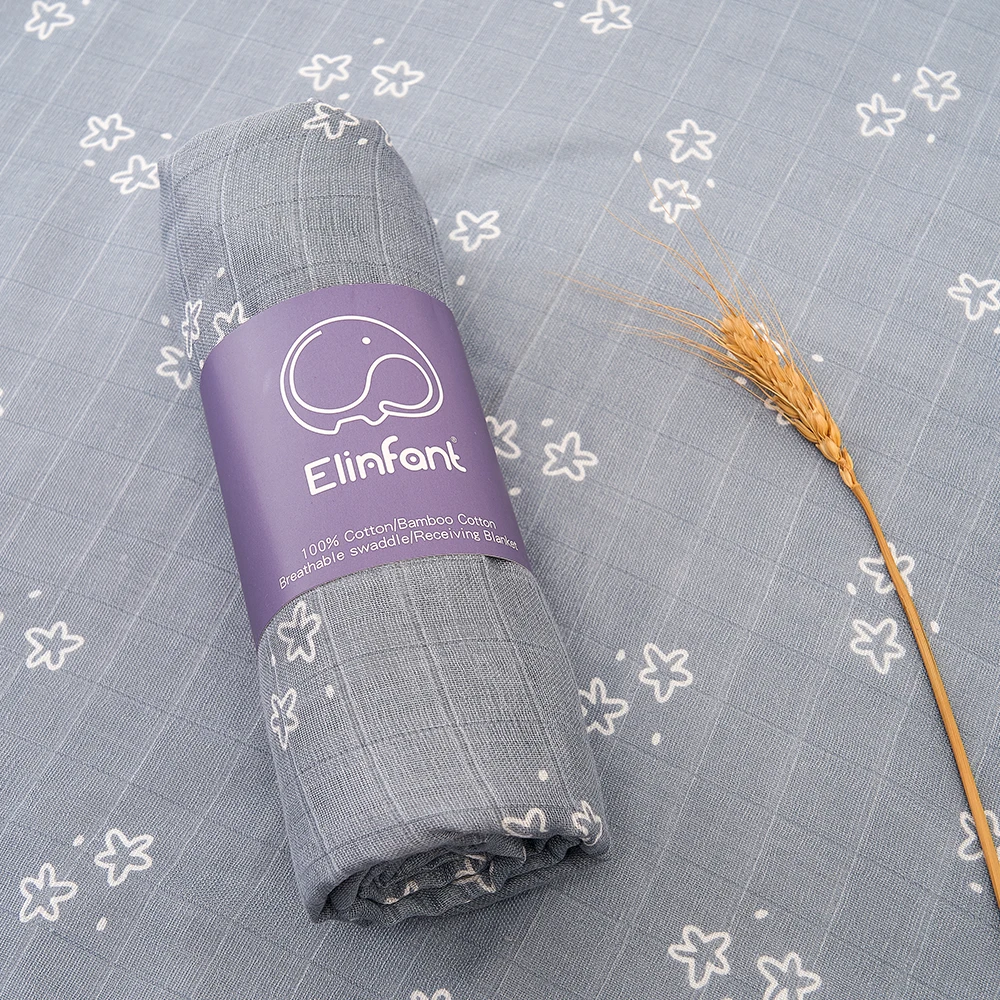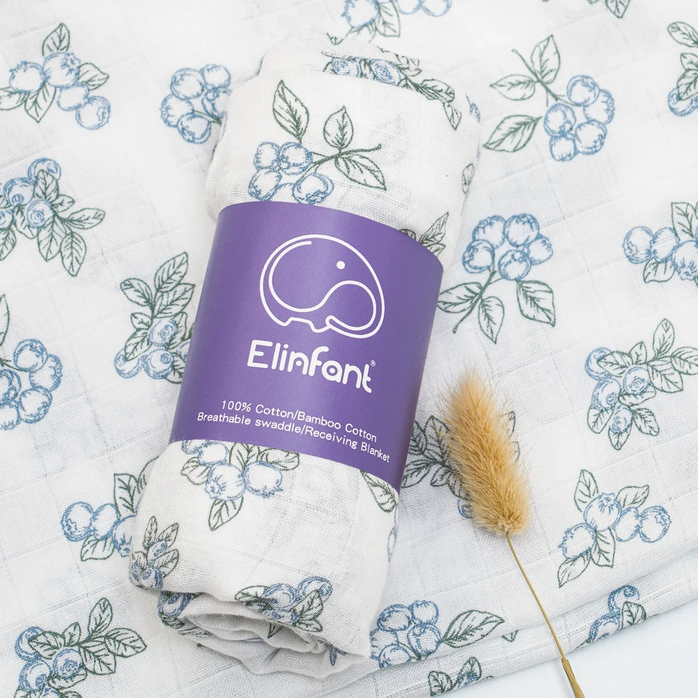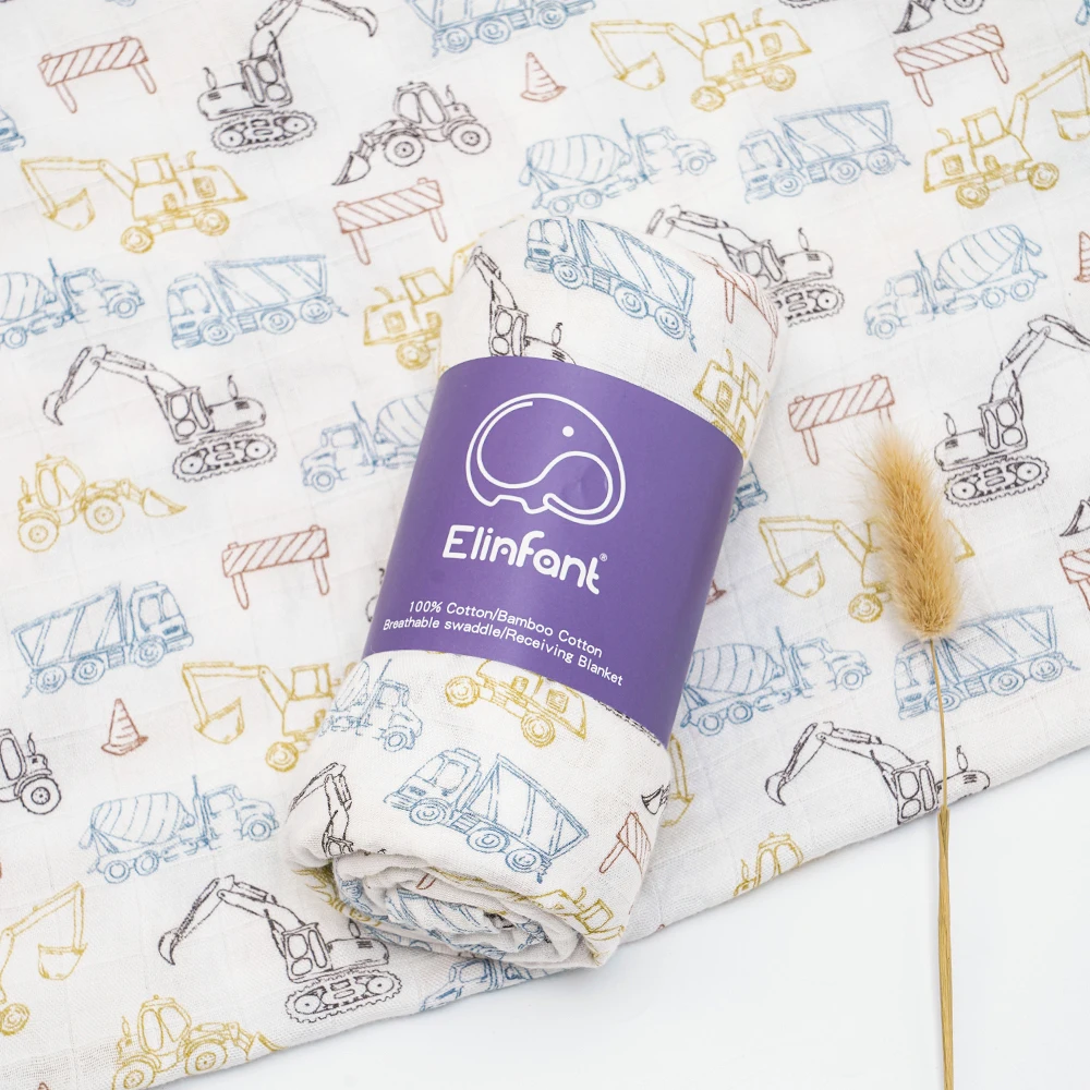 Elinfant 귀여운 소프트 프린트 베이비 타올 랩 120x110cm 대나무 코튼 베이비 모슬린 포대기 담요