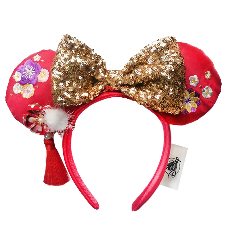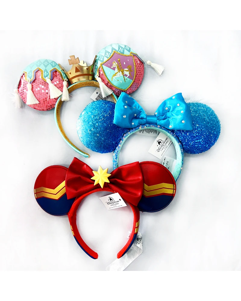2023 디즈니 미키 마우스 귀 머리띠 크라운 활 7 월 미키의 헤어 밴드 Hallowmas 코스프레 플러시 선물 봉제 인형 소녀 파티 헤어 밴드