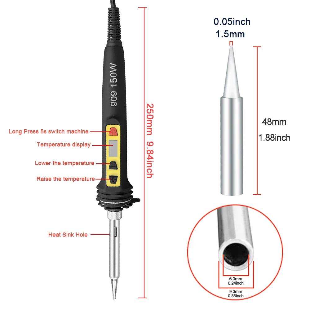 120W/150W 디지털 납땜 인두 키트 수리 납땜 도구 세트 전기 납땜 인두 이중 교정 온도 200-600C 907S 909