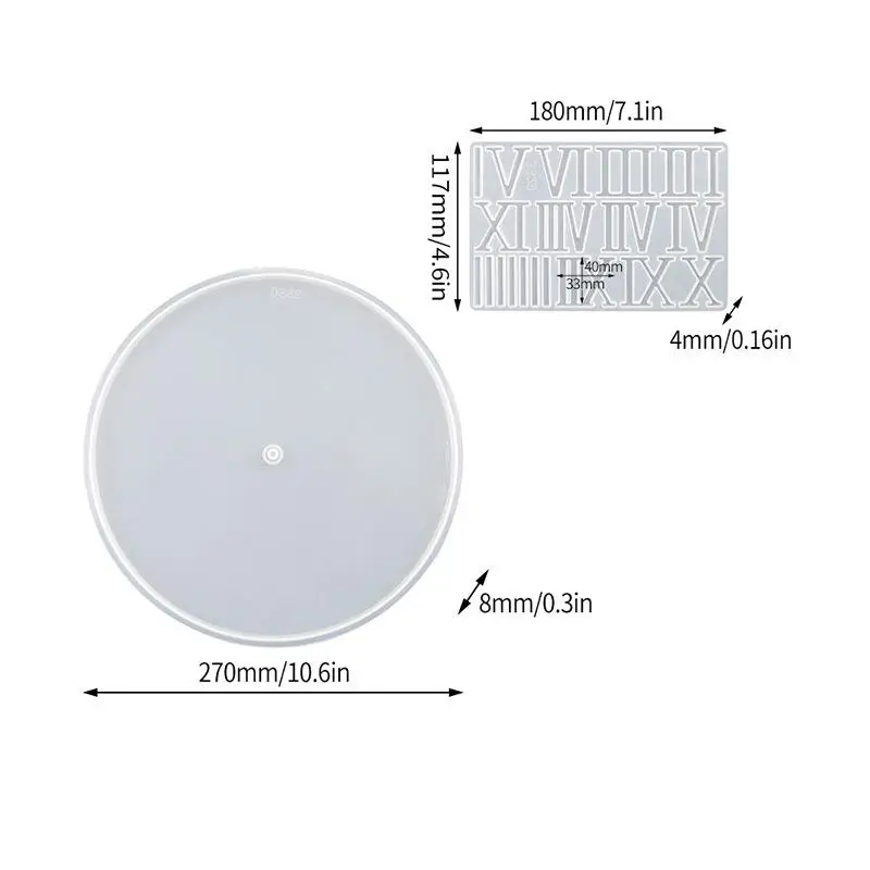 라운드 시계 에폭시 수지 실리콘 금형 아랍어 로마 숫자 꽃 잎 시계 금형 벽 장식 DIY 수지 공예 주조 금형