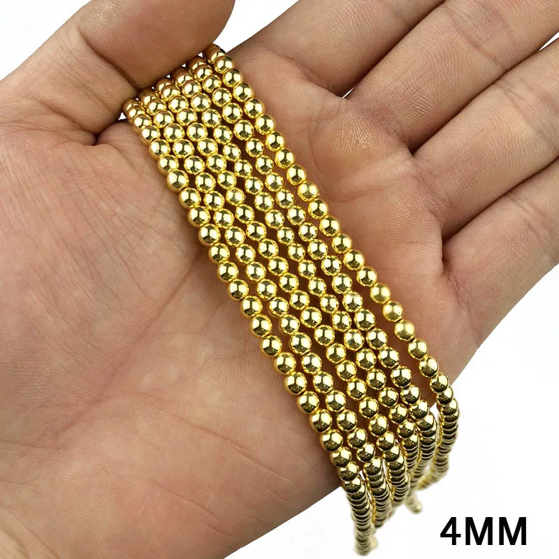 Round Hematite beads 2/3/4/6/8/10mm Natural Stone 14k Gold Plated color Loose beads ball Jewelry bracelets Making DIY Accessories