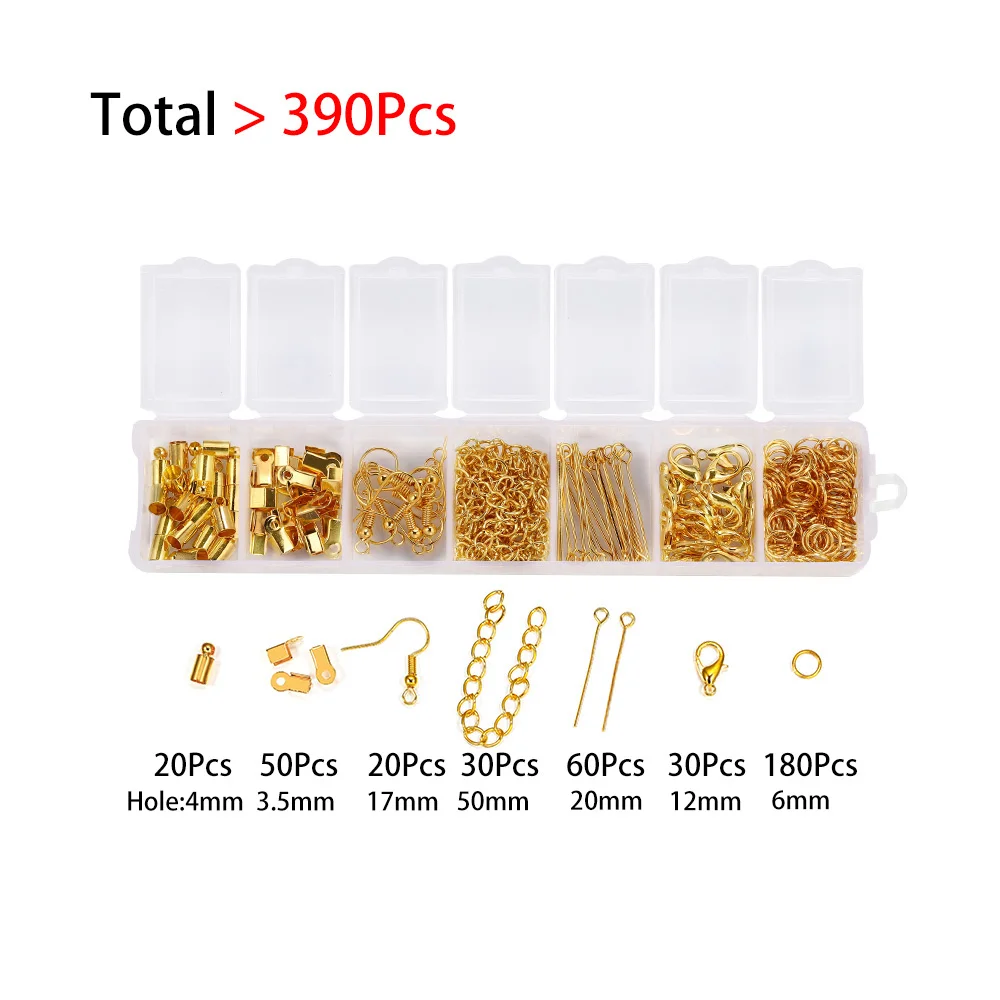 370 개/상자 보석 만들기 키트 랍스터 걸쇠 오픈 점프 링 끝 크림 퍼 비즈 박스 세트 수제 DIY 팔찌 목걸이 결과