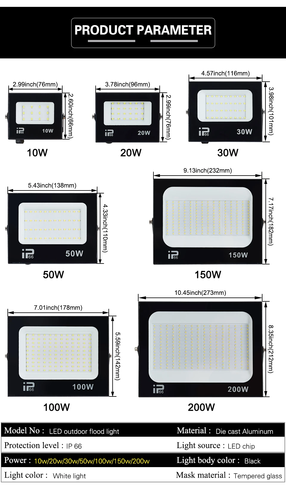 루멘: (10W)900LM/ (20W)1800LM/ (30W)2700LM/ (50W)4500LM/ (100W)9000LM/ (150W)13500LM/ (200W)18000LM