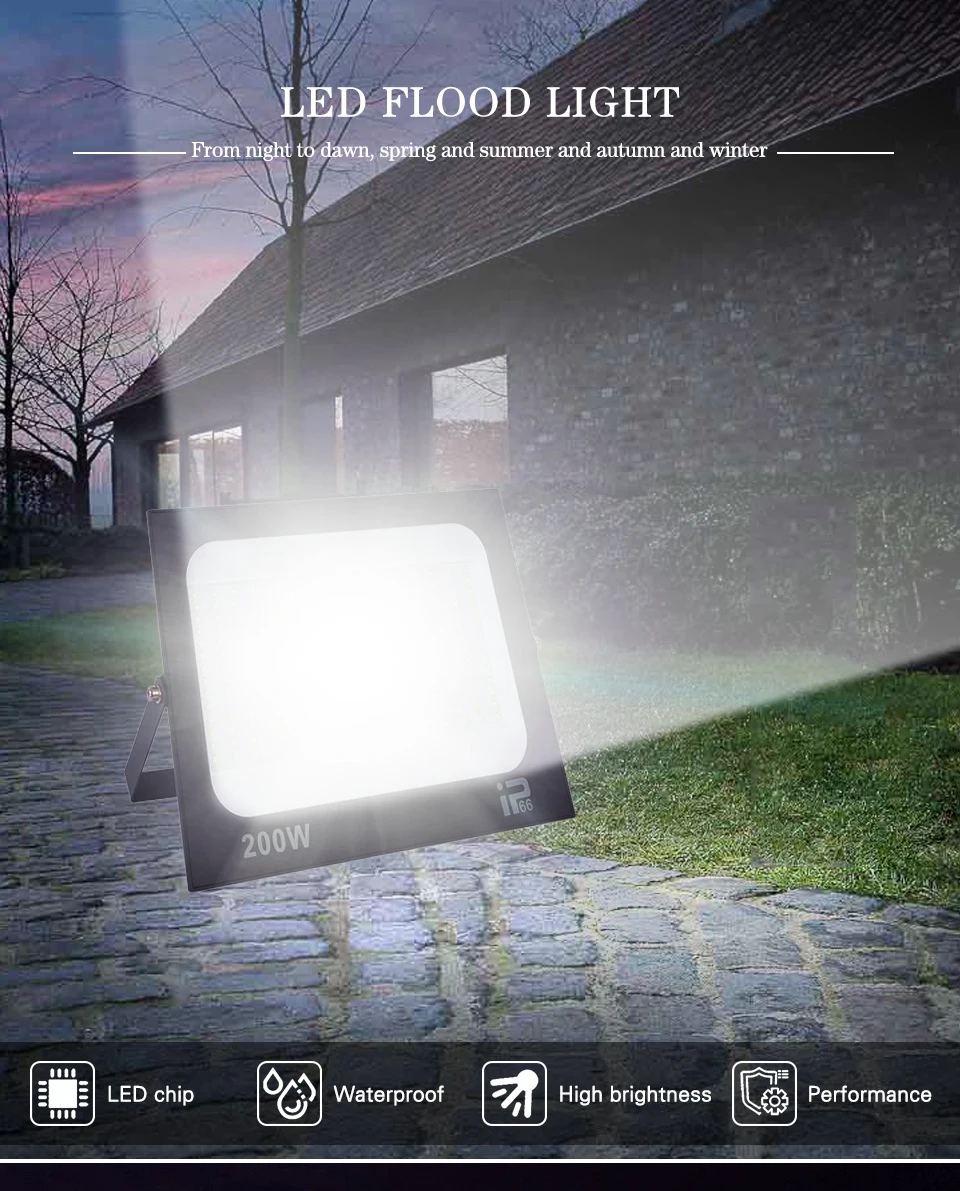 LED 홍수 빛 스포트라이트 AC220V 100W 200W IP66 방수 LED 검정 포탄 정원 거리 게이트 벽 투광 조명
