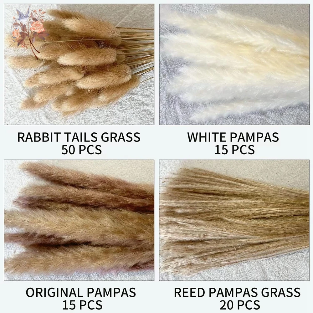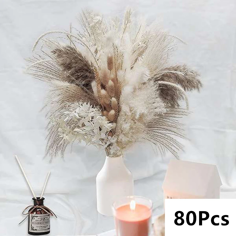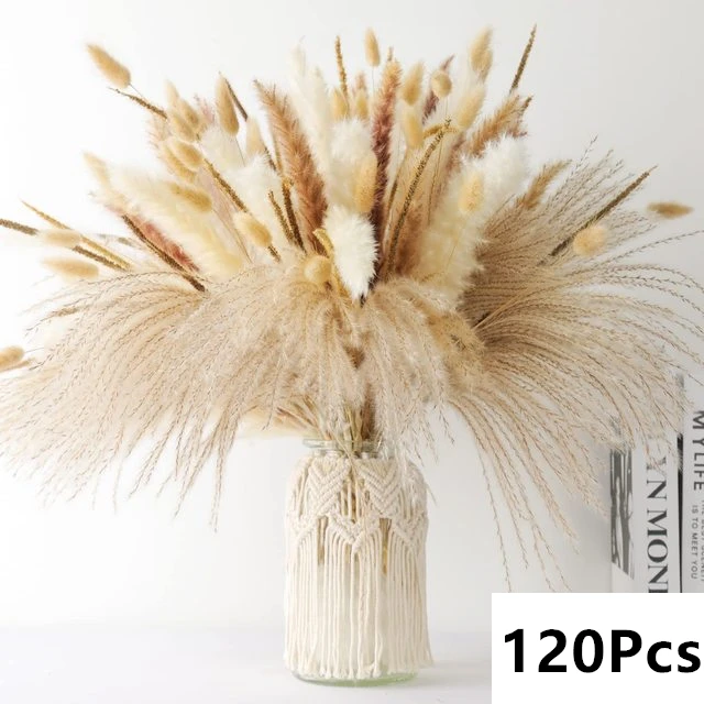 패키지 포함:30-120pcs 푹신한 팜파스 말린 꽃 꽃다발(모든 제품에는 꽃병이 포함되어 있지 않습니다.)