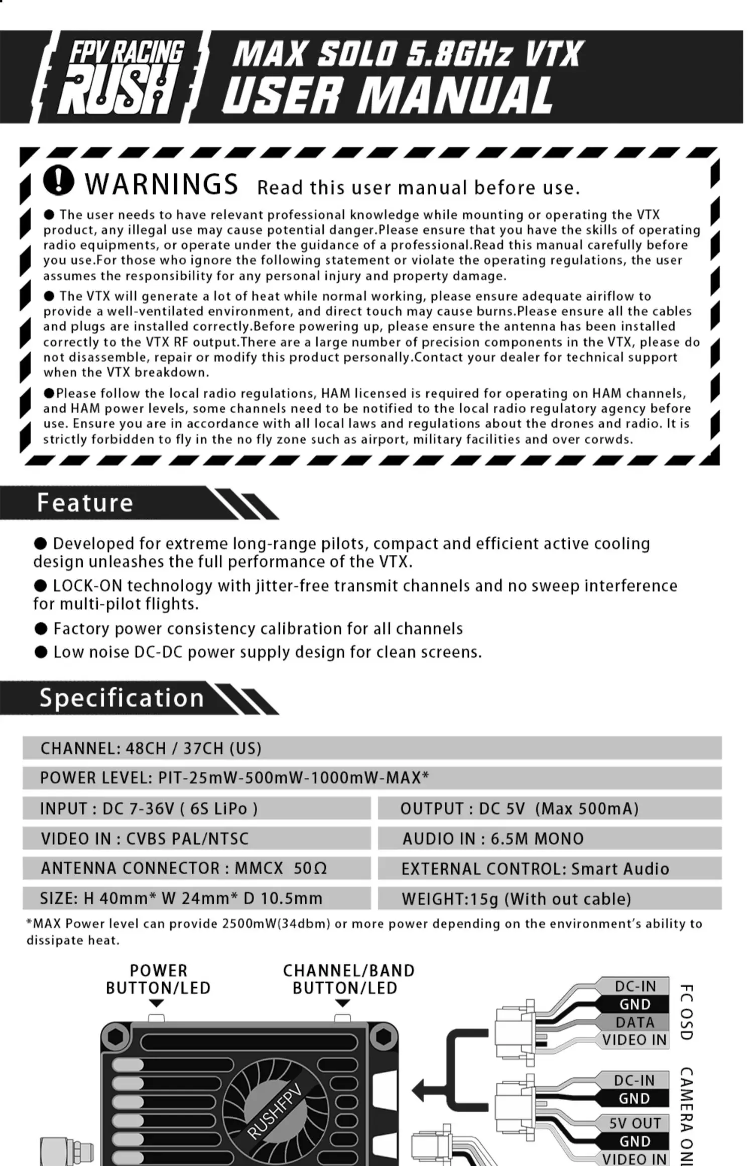 항목:RUSHFPV MAX SOLO 2.5W VTX 비디오 송신기