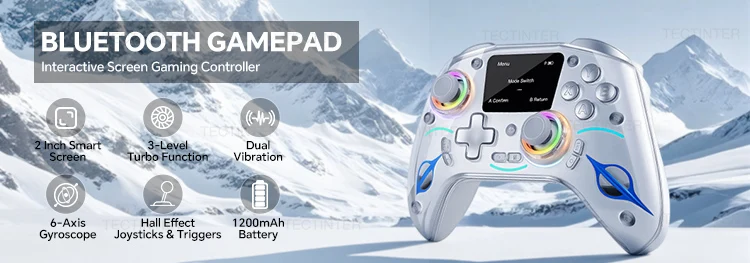 2인치 스마트 디스플레이로 구동되는 이 프리미엄 컨트롤러는 직관적인 제어, 전체 기능 가시성, 그리고 한눈에 가능한 손쉬운 모드 전환을 제공합니다.유선/블루투스 듀얼 연결을 지원하며 스위치, PS4, PC, Android 및 iOS와 원활하게 작동하여 진정한 멀티 플랫폼의 자유를 제공합니다.4개의 프로그래밍 가능한 백 버튼, 3단계 터보, 듀얼 진동, RGB 조명, 6축 자이로, 드리프트 없는 홀 효과 조이스틱 및 트리거로 지배하십시오.내장된 1200mAh 배터리로 더 오래 게임을 즐길 수 있습니다—정확성, 속도, 몰입감 넘치는 e스포츠 성능을 위한 최강의 무기입니다.