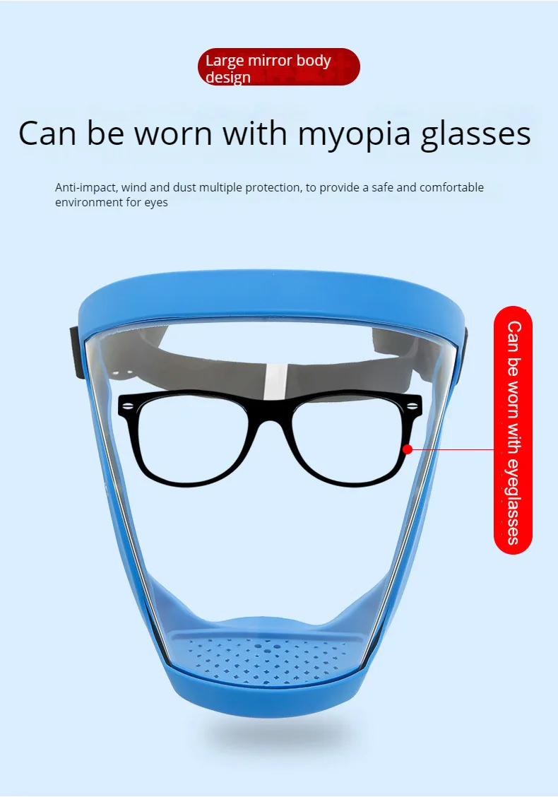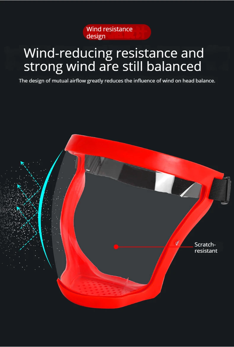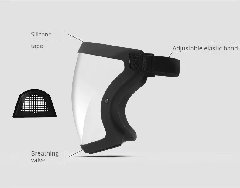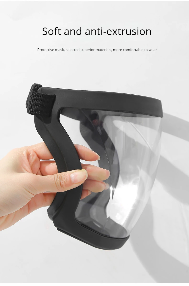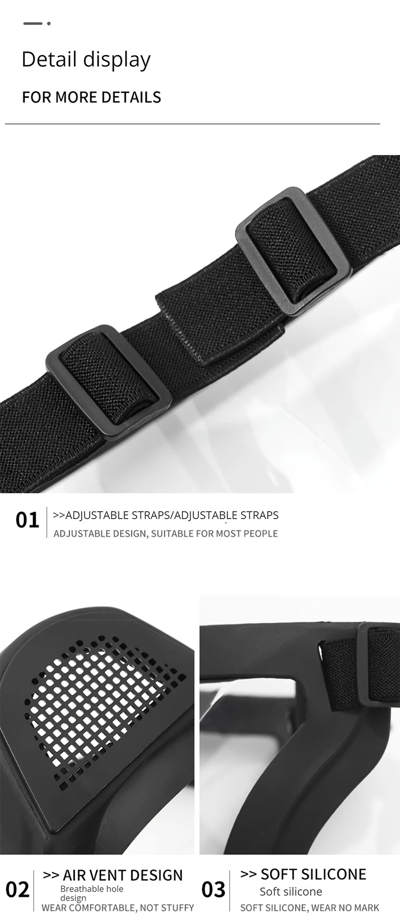 [편안하고 유연한] - 저희 얼굴 보호대는 부드럽고 편안한 실리콘으로 제작되었으며 탄탄하고 편안한 착용감을 위해 조절 가능한 탄성 끈이 있는 매우 유연한 렌즈로 제작되었습니다.