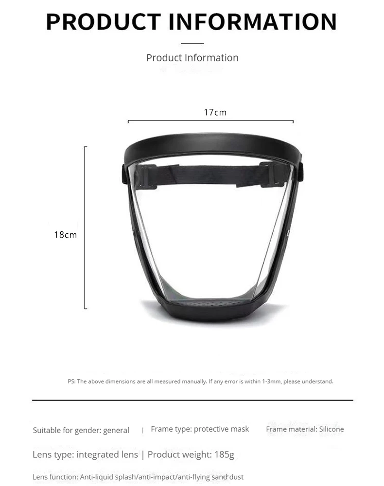 [전면 보호]-넓은 영역 마스크를 사용하여 물방울, 침, 물보라, 기름 및 먼지로부터 얼굴 전체를 보호하십시오.