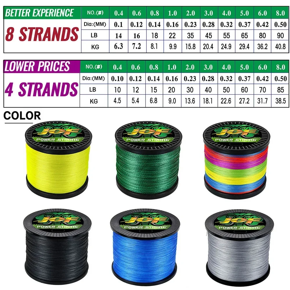 JOF 낚싯줄 8 땋은 멀티 필라멘트 PE 300M 500M 1000M 내구성 부드러운 물린 방지 짠 스레드 액세서리 일본 태클