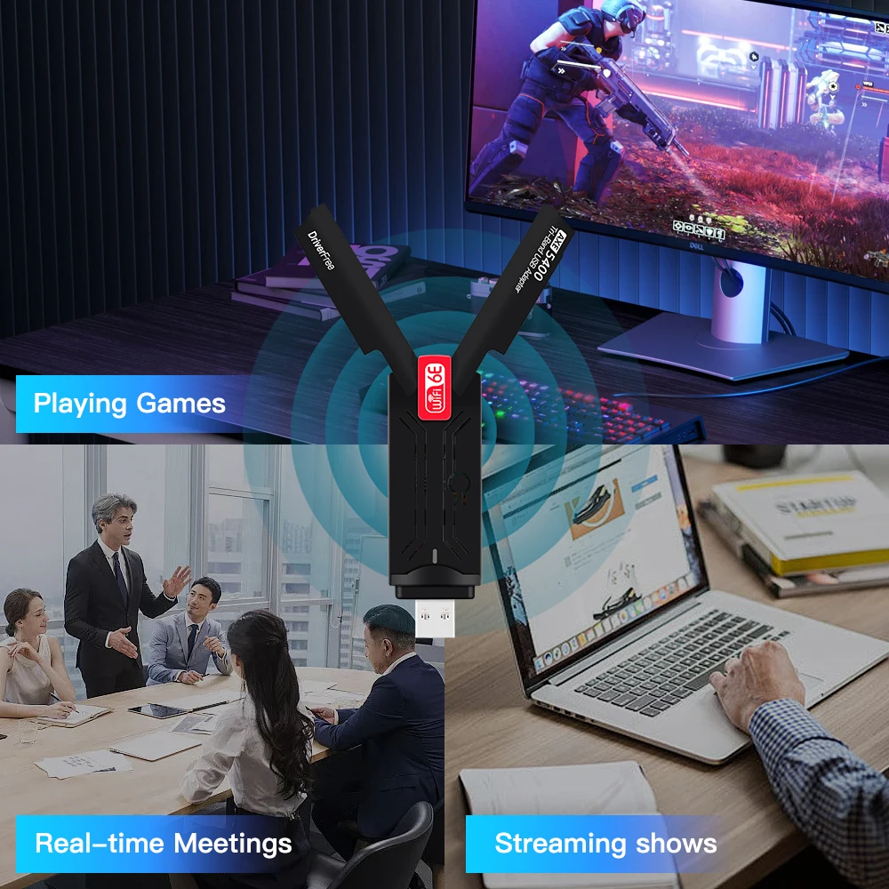 WiFi 6e 무선 네트워크 카드 USB 3.0 5400Mbps 802.11ax LAN 어댑터(노트북 PC용 고이득 안테나 포함) WiFi 안테나 동글 드라이버 무료