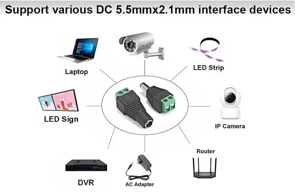 다양한 DC 5.5mm x 2.1mm 인터페이스 장치 지원