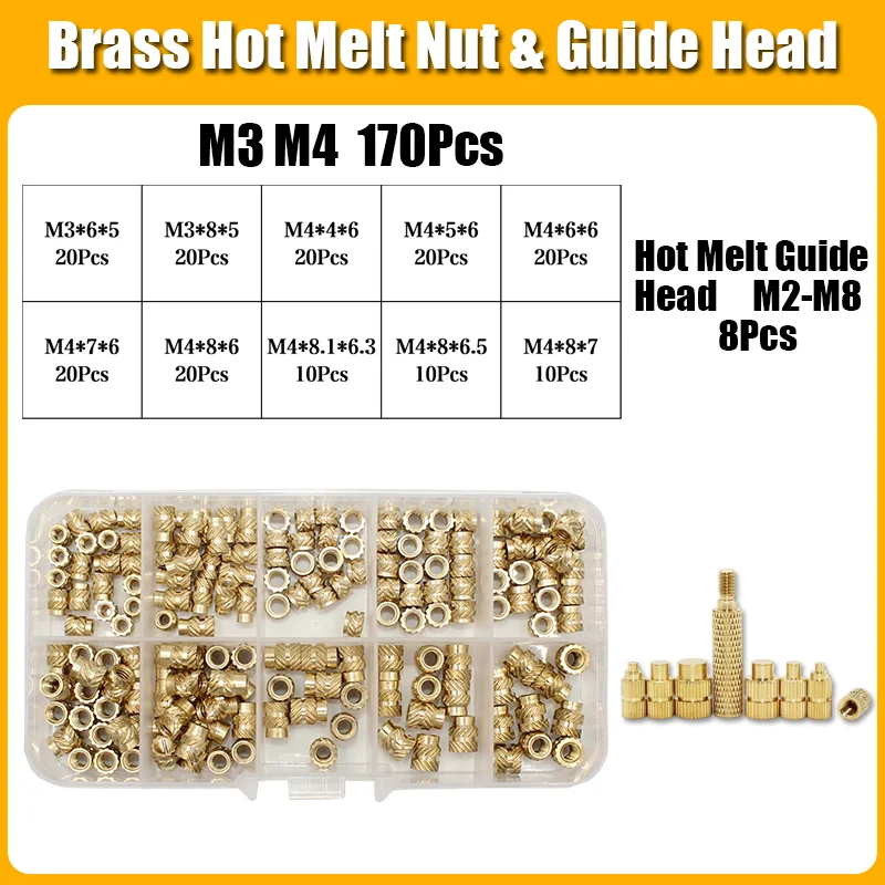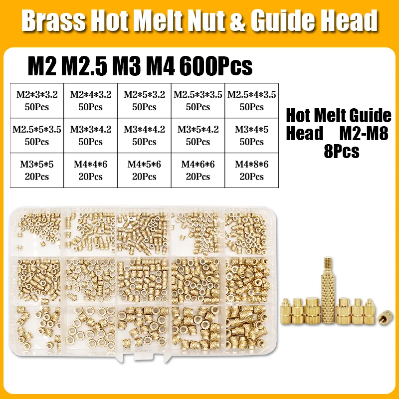 M2 M2.5 M3 M4 M5 M6 인서트 황동 너트 핫멜트 널링 스레드 열 내장 구리 너트 3d 프린터 플라스틱 케이스용 프레스 맞춤 내장