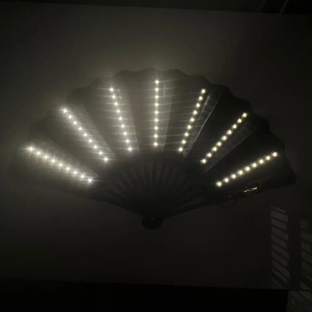 3: [열기 쉬움] 손목을 가볍게 두드리면 불이 들어오는 아름다운 대형 부채를 켜고 전원 버튼을 켜세요(23A/12V 배터리는 포함되어 있지 않습니다). 매우 눈에 띄고 멋져 보입니다.