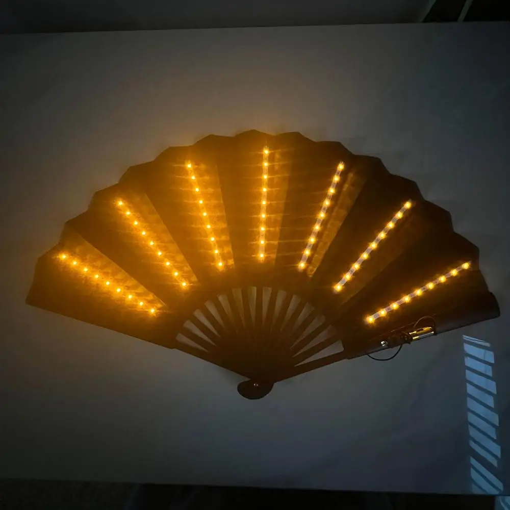 1: [복고풍 중국어] 손으로 접은 LED 발광 중국 부채는 중국 요소로 가득 차 있으며 환상적인 LED는 이 부채를 더욱 정교하게 보이게 합니다.