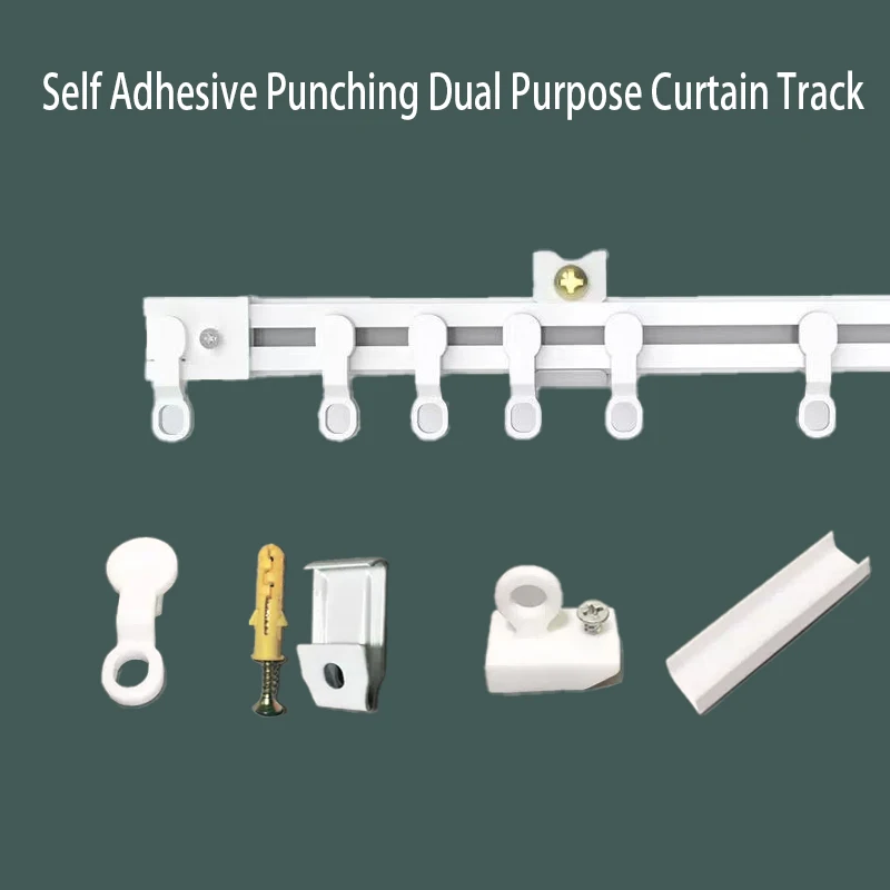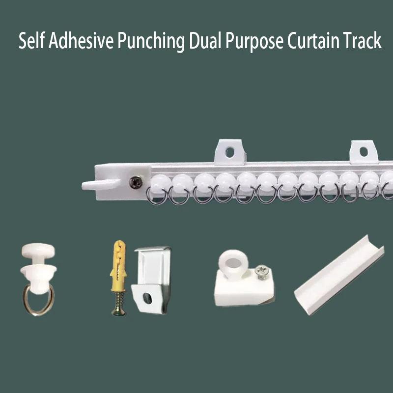 자체 접착 펀칭 이중 목적 커튼 트랙 나노 사일런트 커튼 슬라이드로드 발코니 베이 창 도어 커튼 설치 접착 트랙