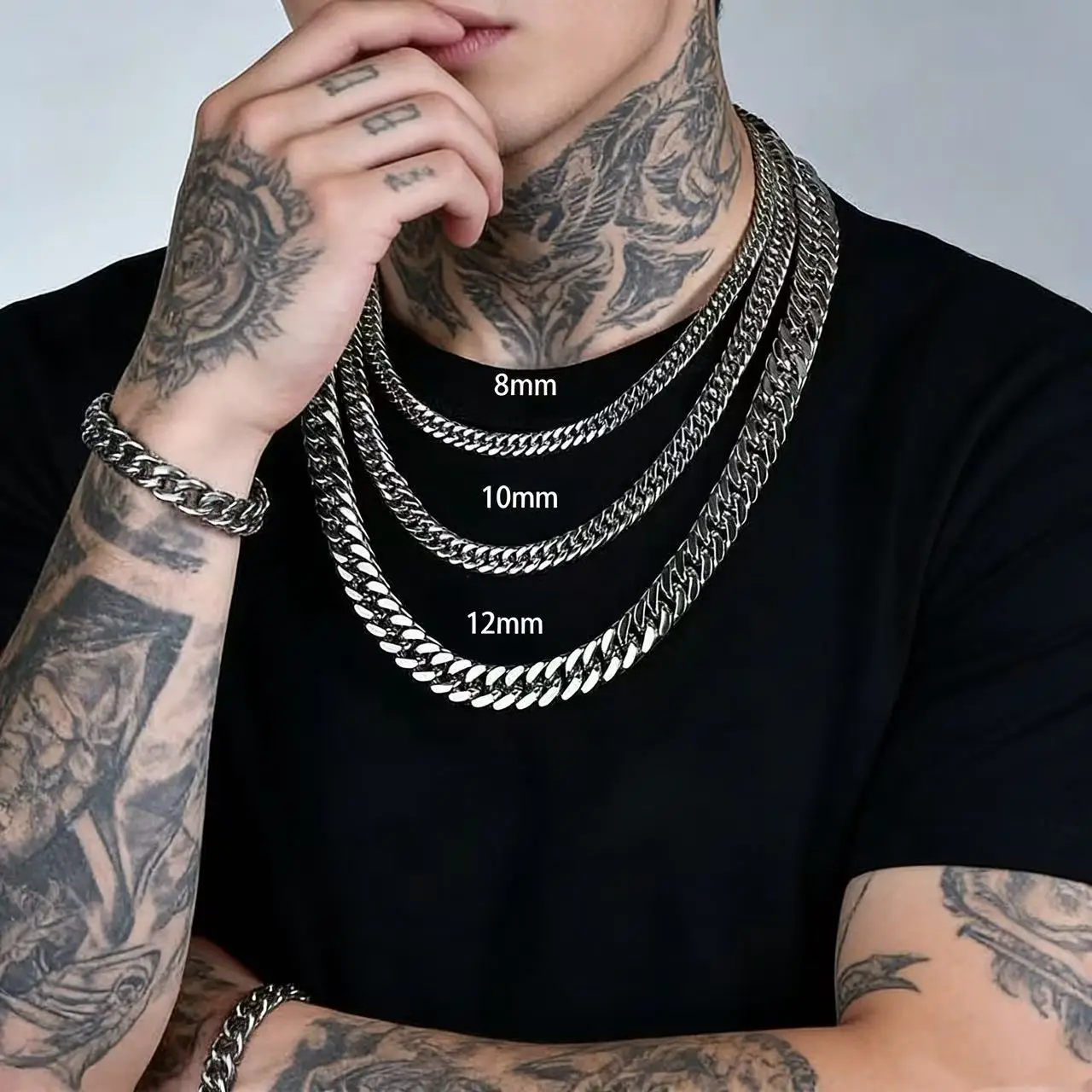8/10/12/14MM 폭으로 제공되는 이 LA 쿠반 링크 체인은 다양한 스타일 선호도와 상황에 맞게 제작되었습니다.