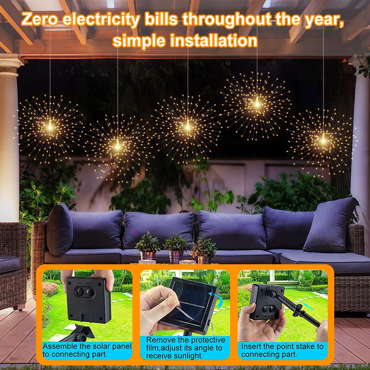 불꽃놀이처럼 보이는 아름다운 태양광 램프