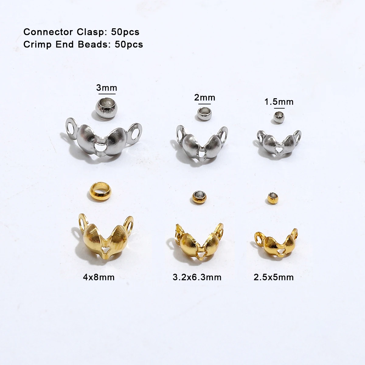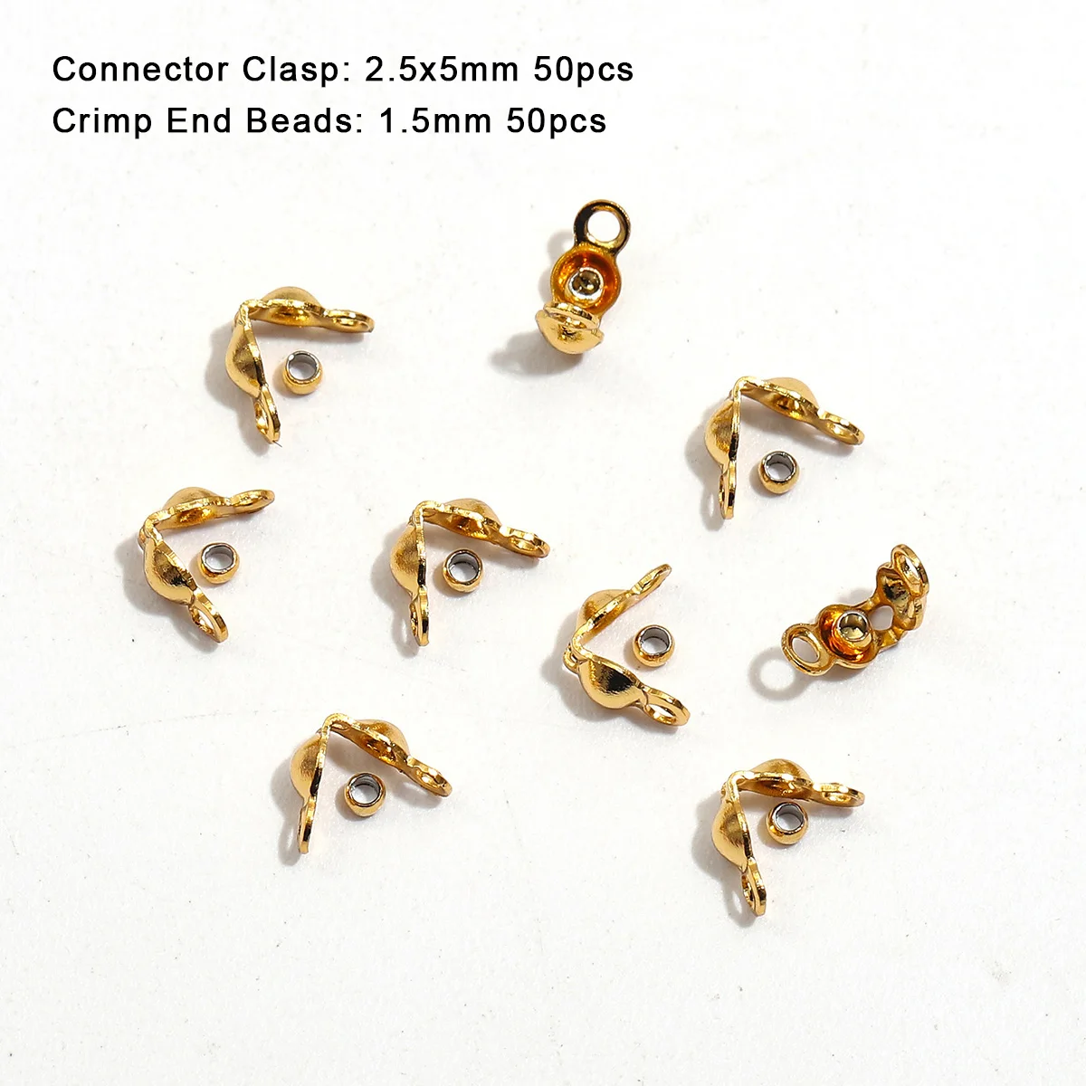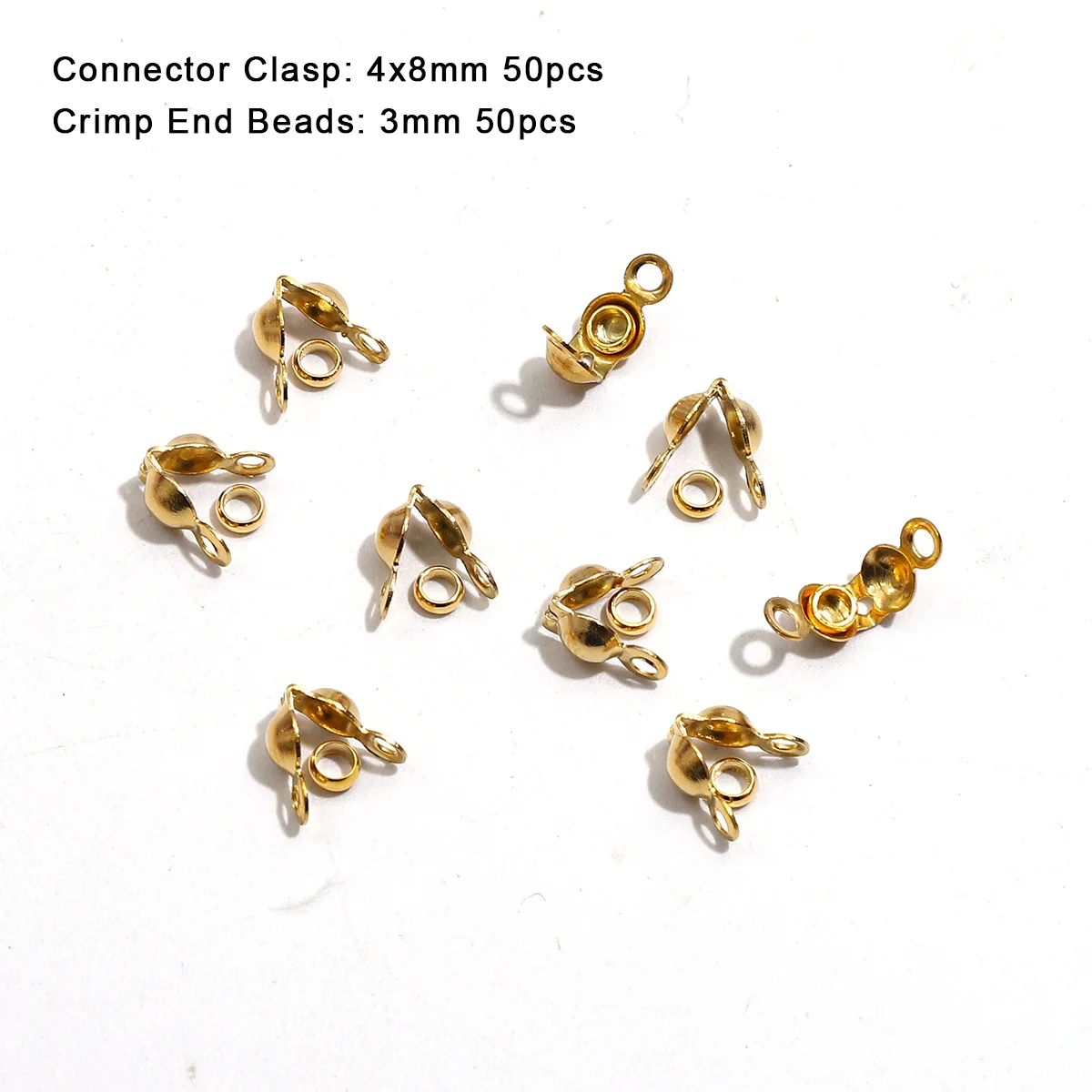 100 개/몫 스테인레스 스틸 골드 도금 커넥터 걸쇠 압착 엔드 비즈 팔찌 목걸이 체인 DIY 쥬얼리 용품 만들기