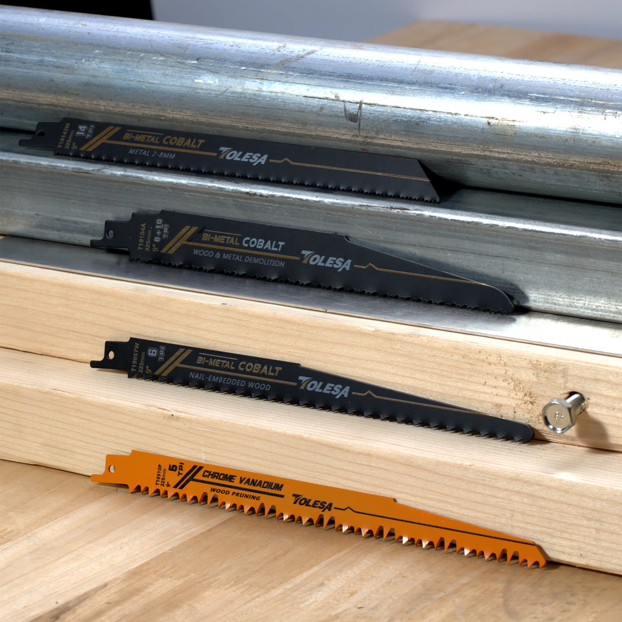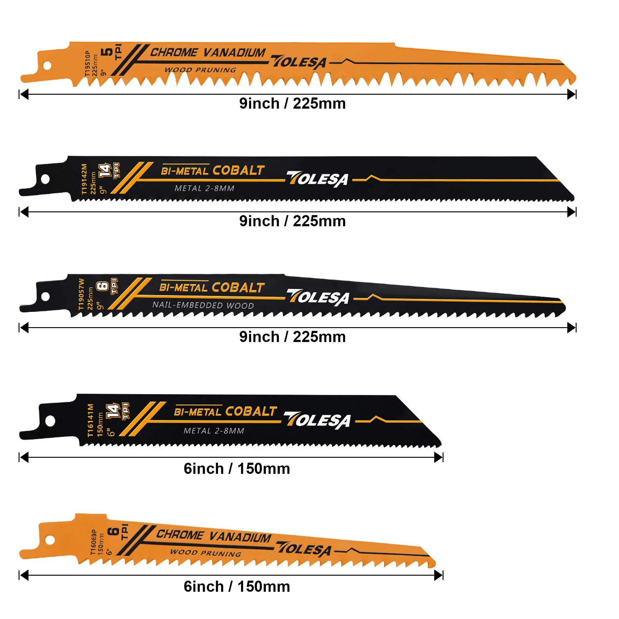 TOLESA Reciprocating Saw Blades for Wood Pruning PVC Cutting Bi-metal Reciprocating Saw Blades for Heavy Metal Cutting, Metal Pipe Sheet Metal Rebar Sawzall Blades for Window Door Demolition 10 Pieces