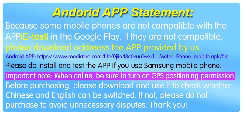 3.Android 앱: Google Play에서 E-테스트를 검색하여 다운로드하거나https://www.mediafire.com/file/0jiio43c0vuu1wx/U_Meter-Phone_mobile.apk/file