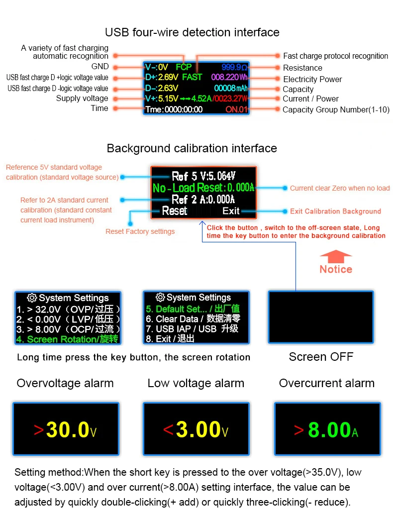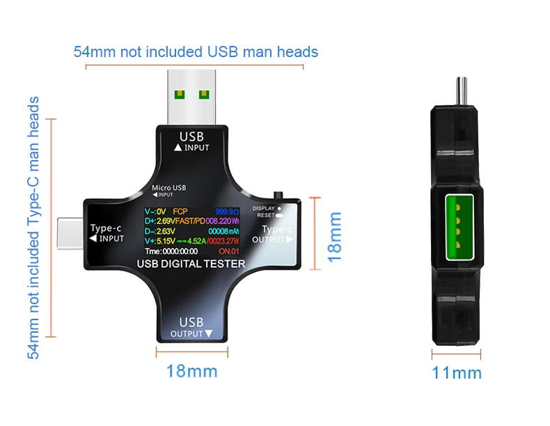 본 제품은 USB 및 Type-c 겸용 제품입니다.USB 인터페이스가 USB 충전기에 삽입되고 USB 테스터 화면이 표시됩니다.TYPE-C를 PD 포트에 삽입했는데 표시되지 않습니다.TYPE-C 출력을 휴대폰에 연결하면 화면이 표시됩니다!