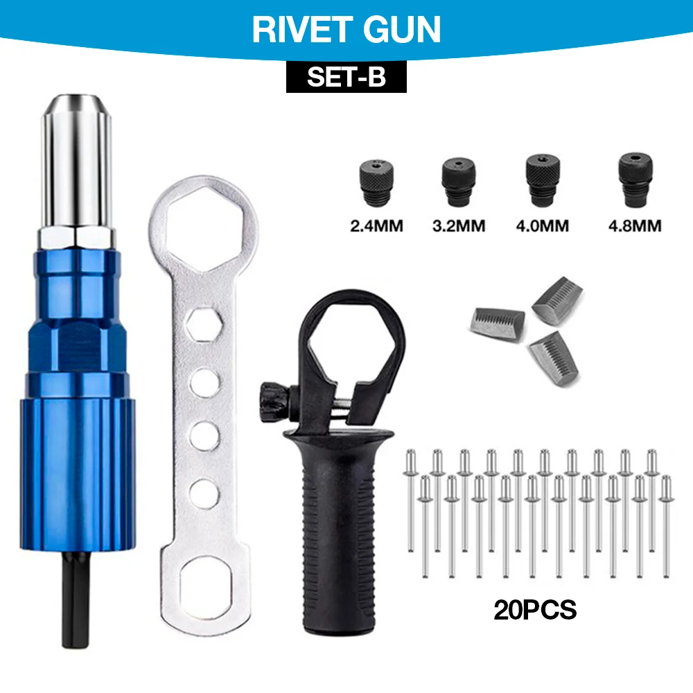 다기능 - 이 리벳 건은 다양한 유형의 전동 공구와 결합할 수 있습니다.